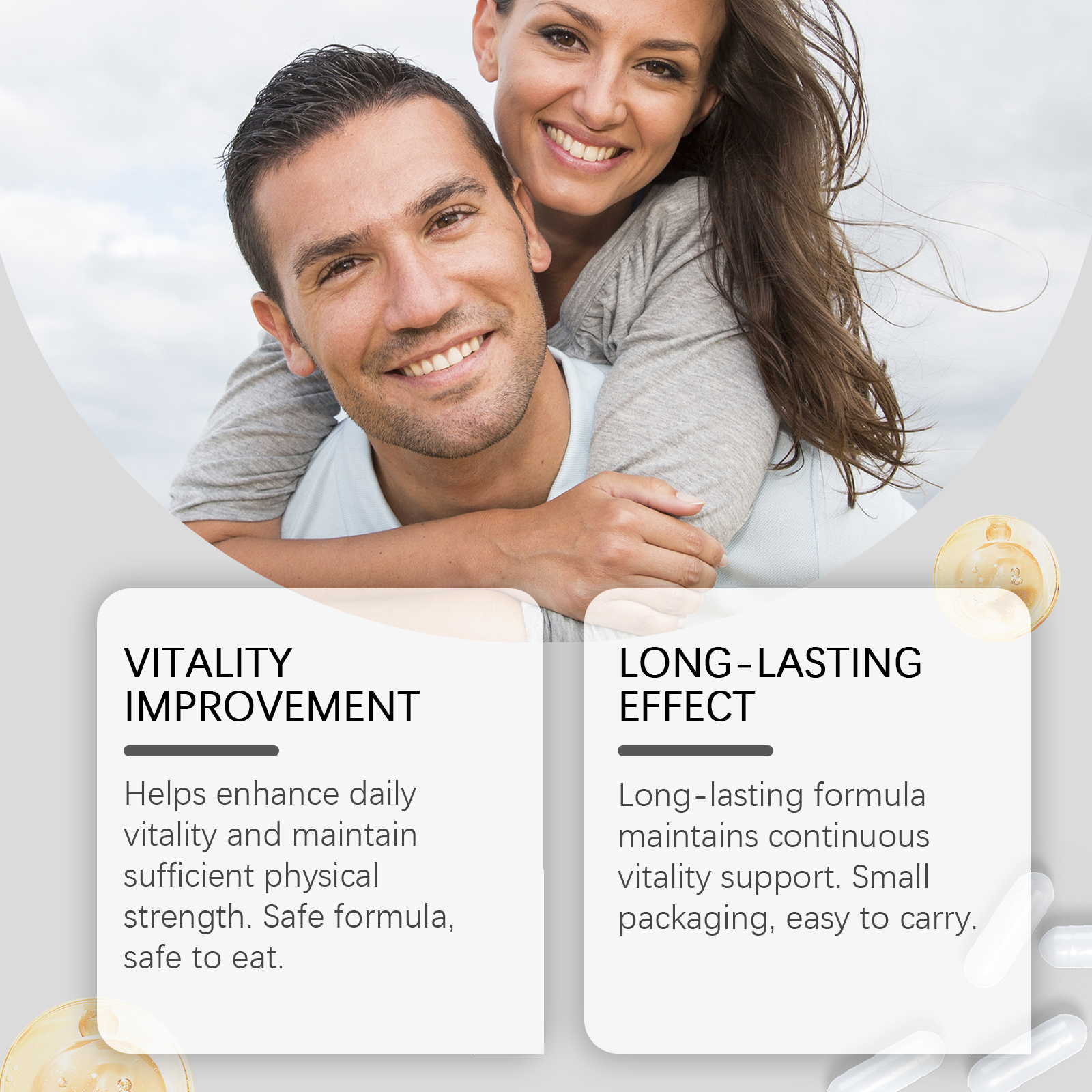 我们的玛卡胶囊,由钠、食用着色剂精心调配而成。专为提供高质量的结果,适合忙碌的生活,易于管理健康设计。使用方法极为便捷:每日2次,每次1~2粒。并且可以保持持续的生命力支持,包装小巧,携带方便。