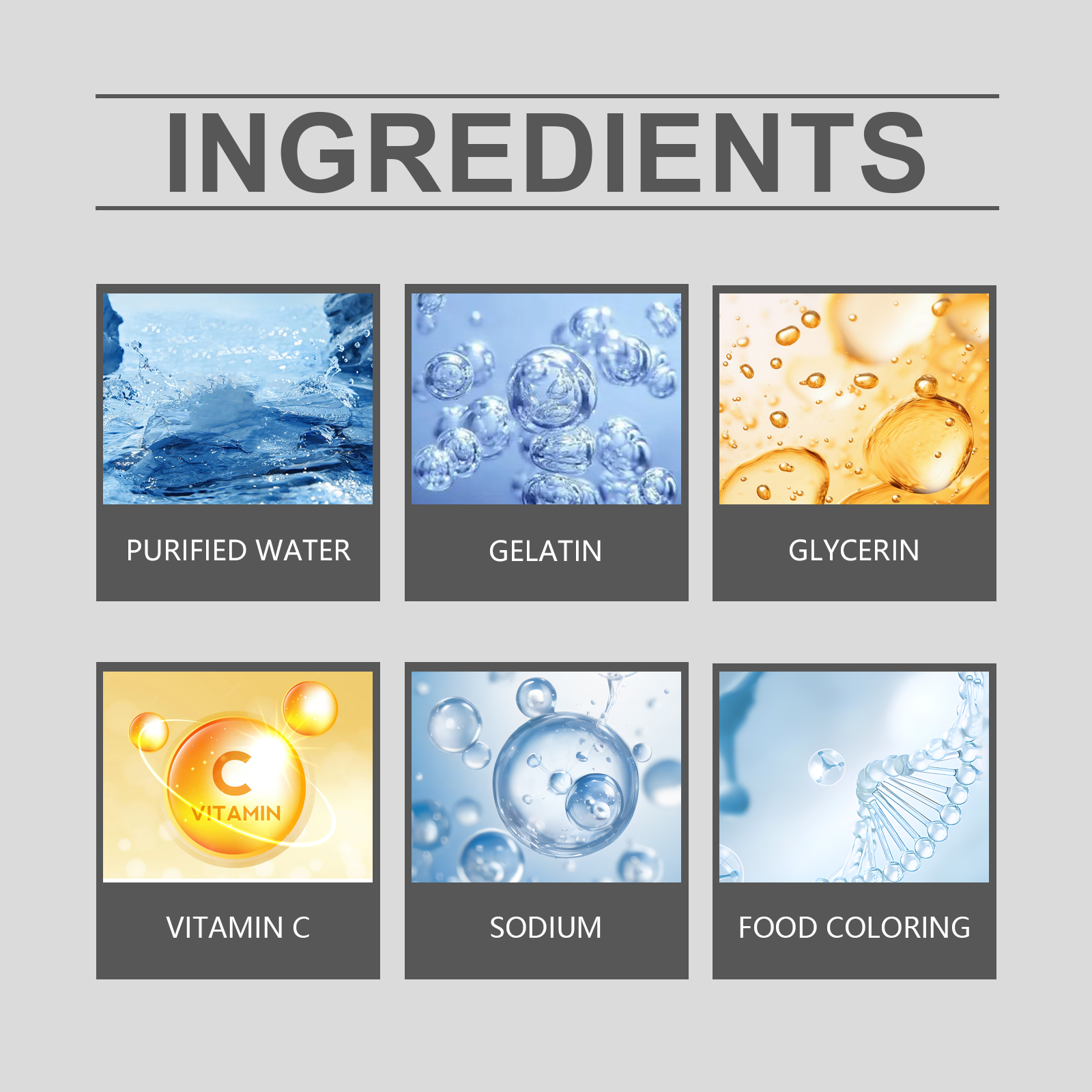 | 成分 | 明胶、钠、食用着色剂 |