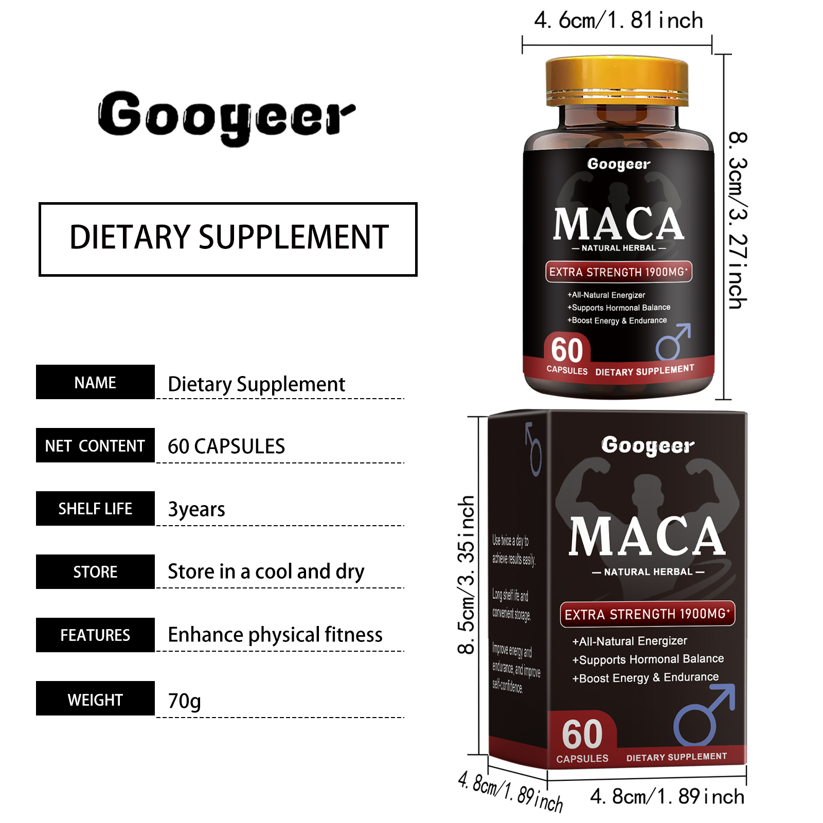 Googeer Maca Capsules, Dietary Supplements For Body Treatment