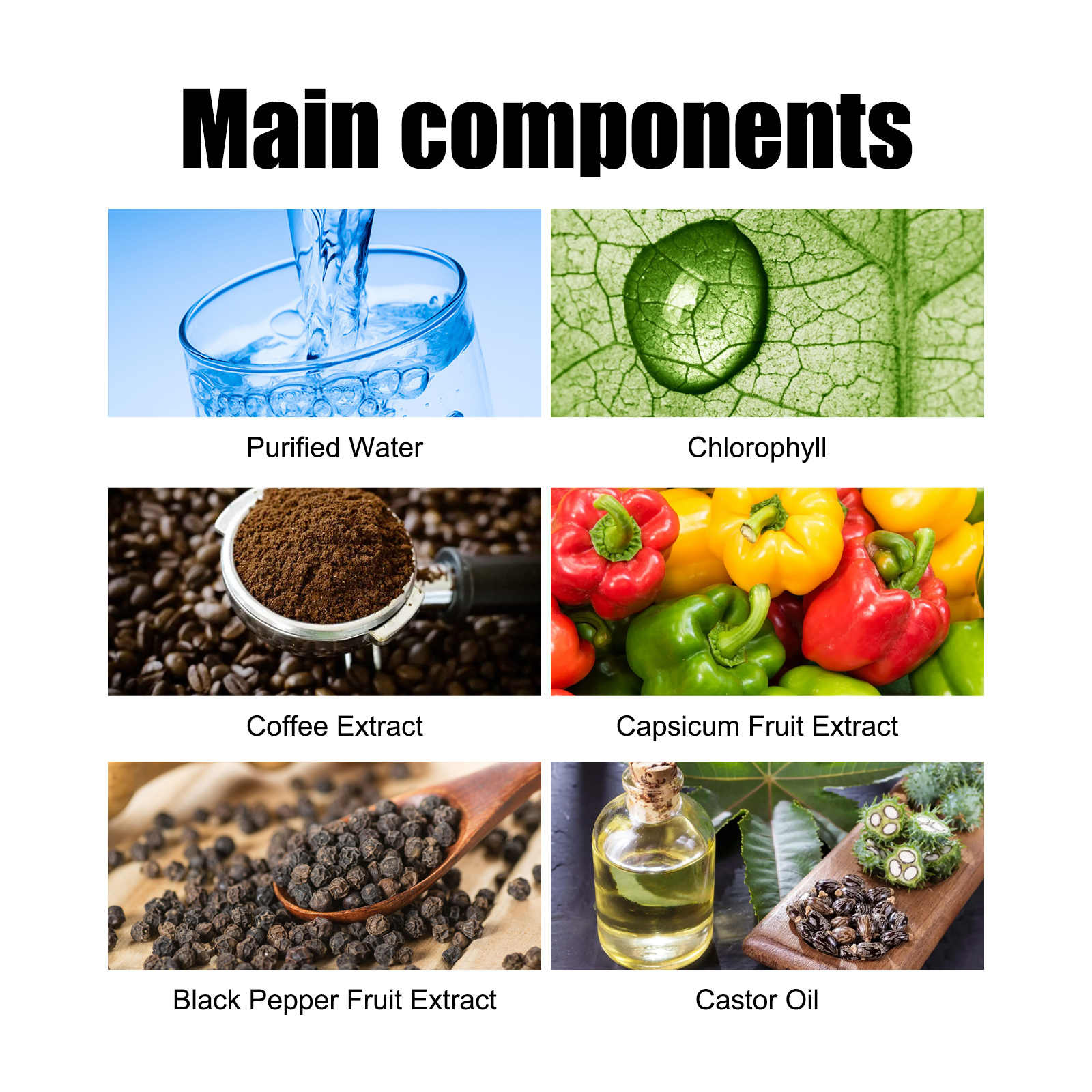 | 成分 | 叶绿素、咖啡提取物、辣椒果提取物 |