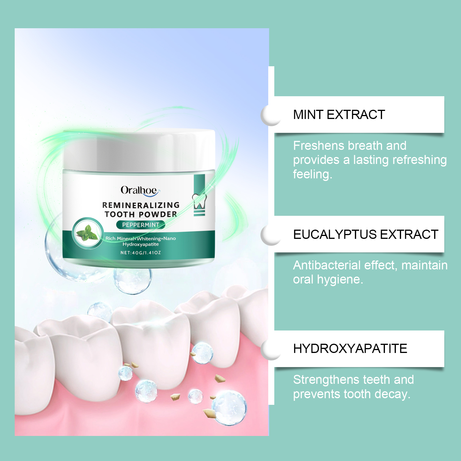 Oralhoe Mint Fresh Breath Powder Teeth Cleaning Decontamination Daily Care Mouth Clean And Fresh