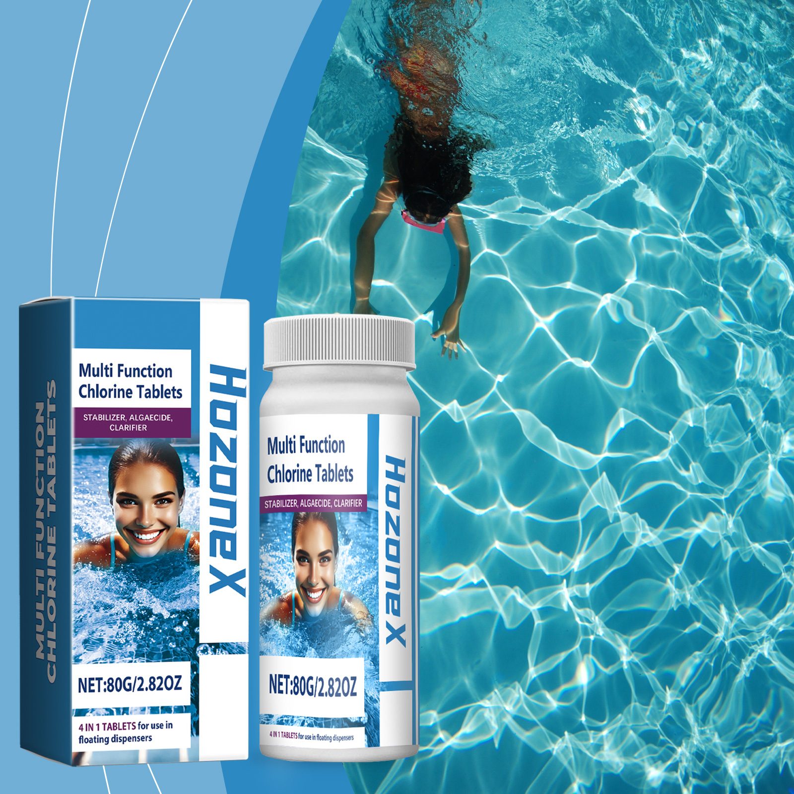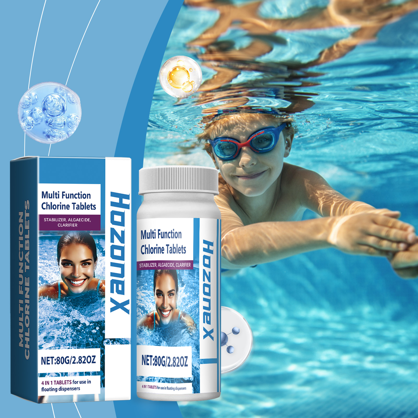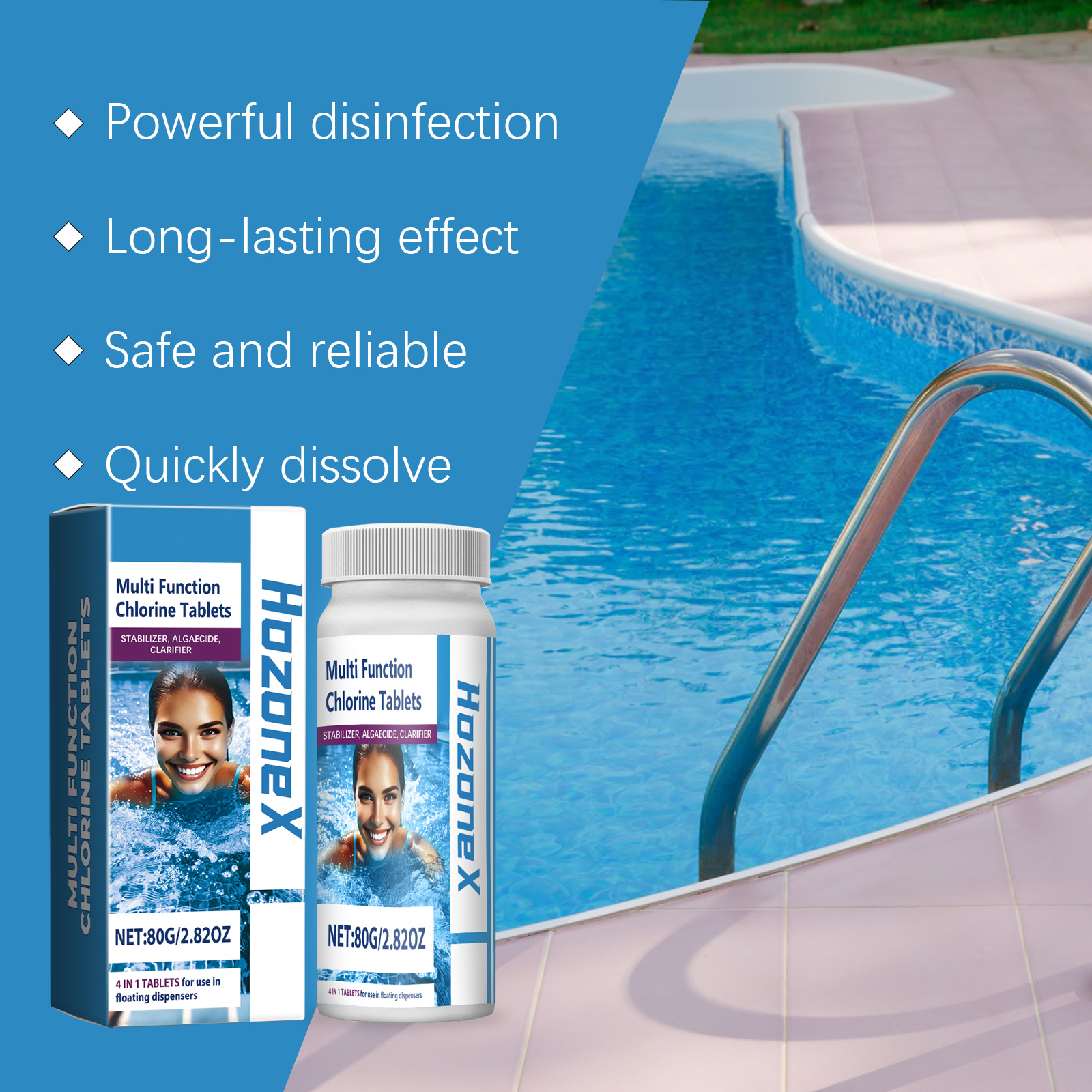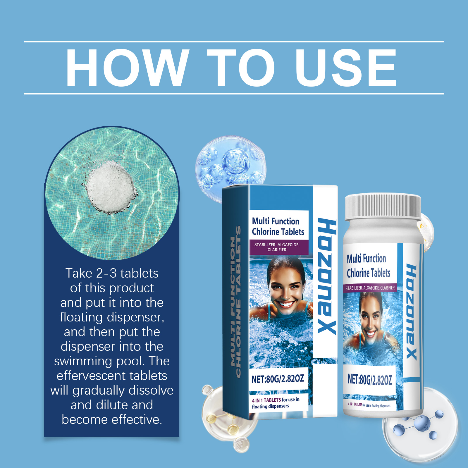 HozoneX Pool Cleaning Chlorine Tablets Pool Water Effervescent Tablets Water Treatment Decontamination Clean Instant Chlorine Tablets