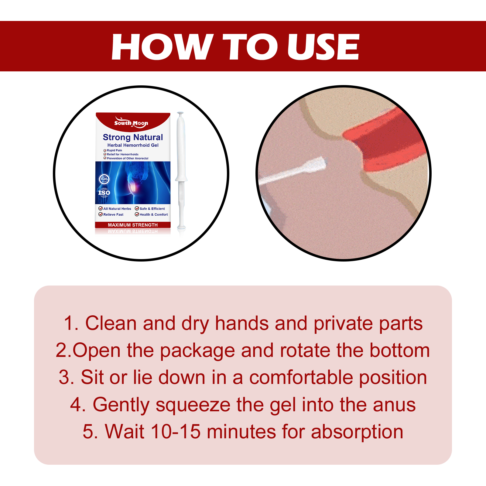 South Moon Strong Natural Herbal Hemorrhoid Gel, Repair Anal Relief Itching Discomfort And Hemorrhoid Treatment Gel