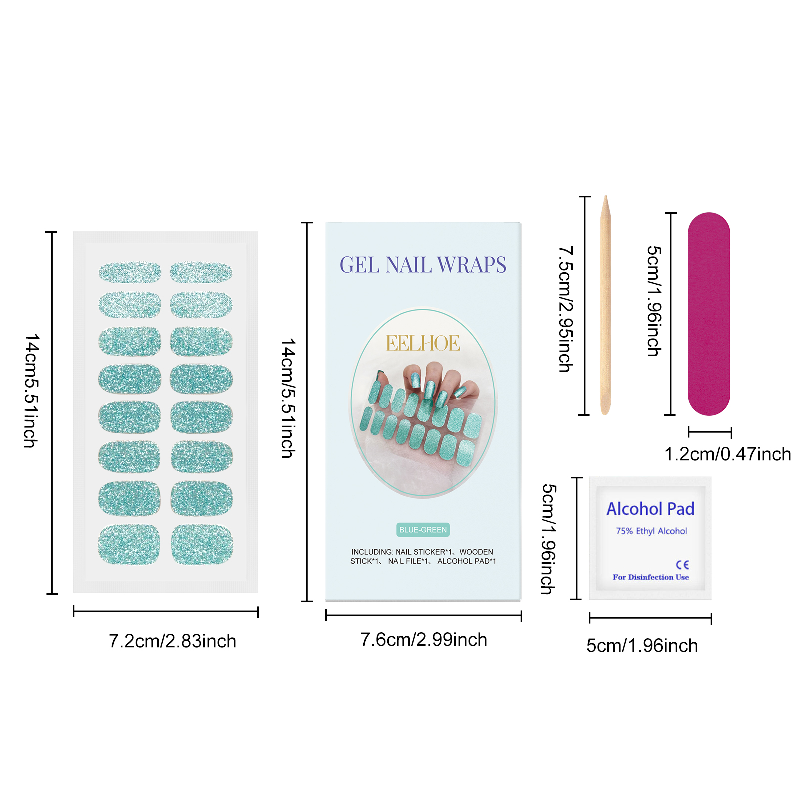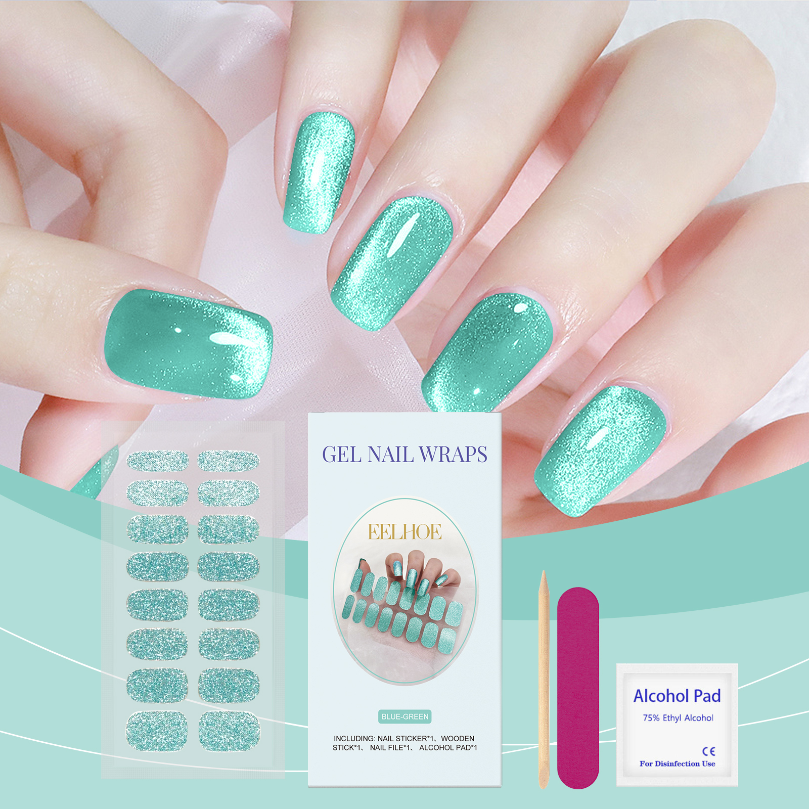 EELHOE Soft Gel Nail Sticker Set (Shiny Blue-Green) Semi-Baked Nail Paper, Fresh And Shiny Minimalist Style Soft Nail Stickers
