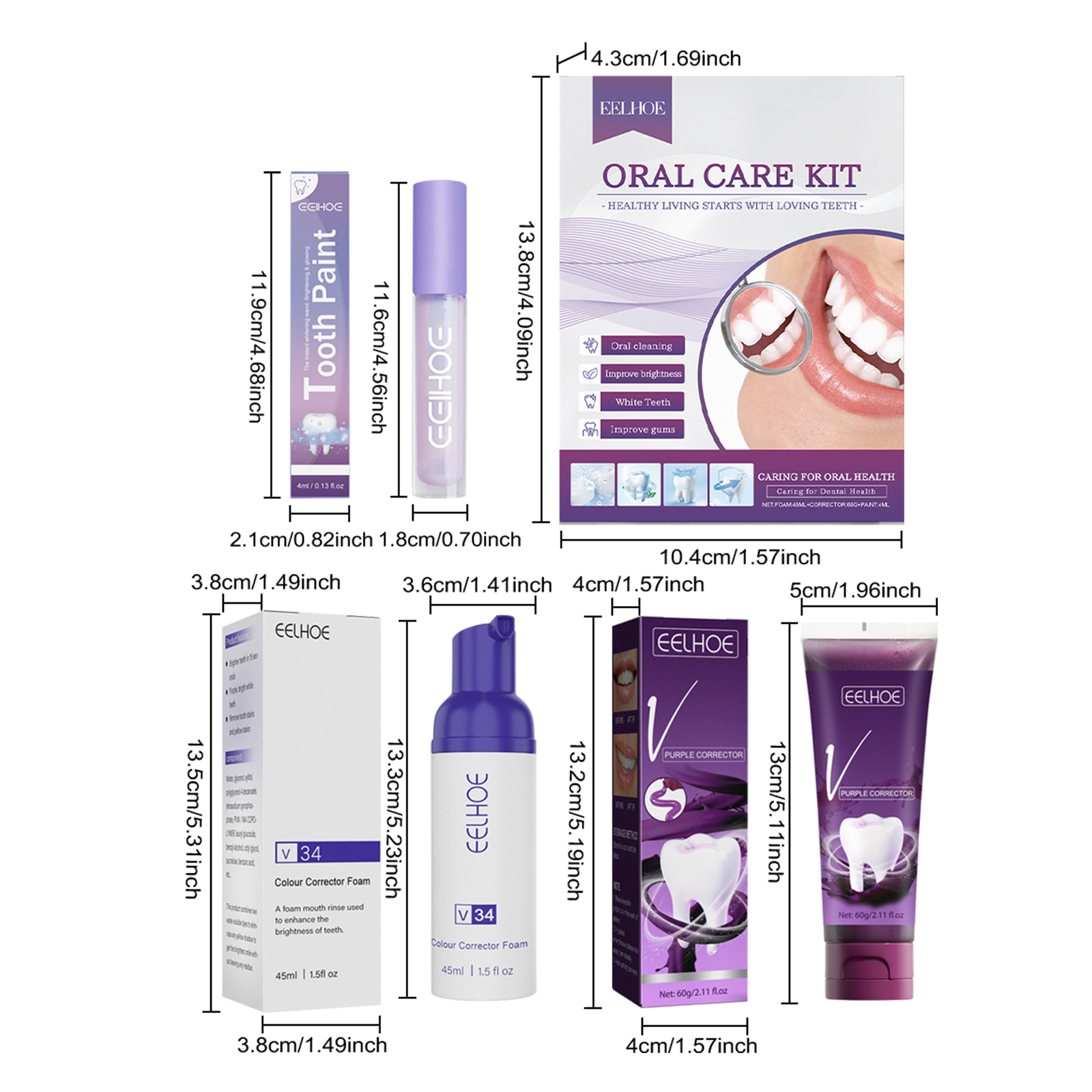 | 产品尺寸 | V34泡沫牙膏:3.8*3.8*13.5cm,cmV34泡沫牙膏:3.6*13.3cm,V34紫调牙膏:4*4*13.2cm,V34紫调牙膏:5*13cm,牙齿笔:2.1*2.1*11.9cm,牙齿笔:1.8*11.6cm |
