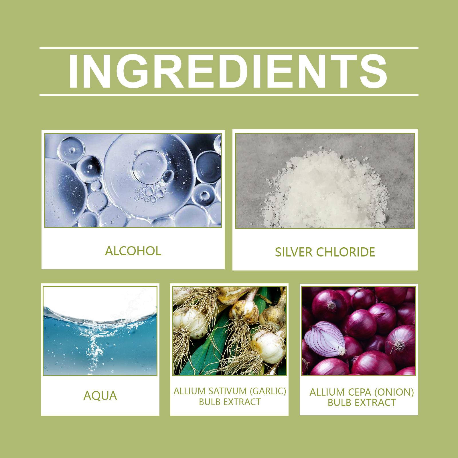 | 成分 | 氯化银、洋葱鳞茎提取物 |