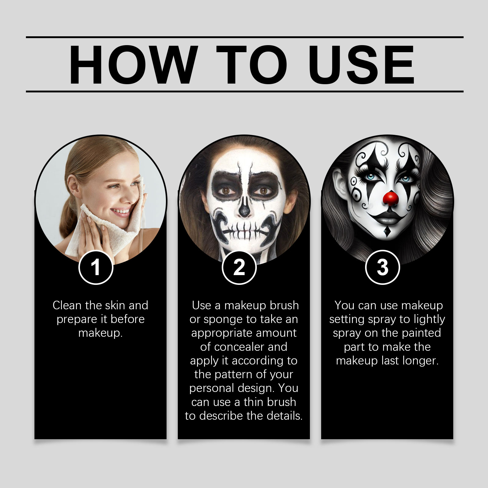 我们的万圣节身体彩绘套装,由透明质酸钠、二氧化钛、云母精心调配而成。专为打造任何惊艳的造型设计。使用方法极为便捷:1.清洁皮肤并做好妆前准备工作。2.用化妆刷或海绵蘸取适量遮瑕膏按照个人设计的图案进行涂抹,可以用细刷子来描绘细节部分。3.可以使用定妆喷雾轻轻喷洒在彩绘部分,让妆容更加持久。并且可以持续一整天,不易褪色,而且颜色持久。