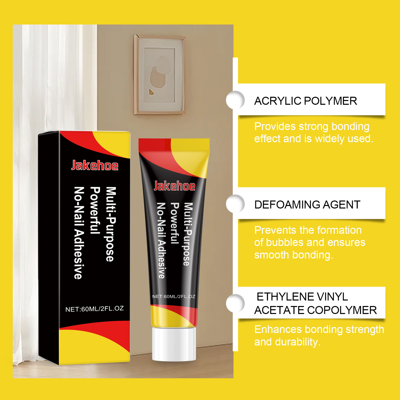 Jakehoe Multi-Purpose Nail-Free Wood Cermet Plastic Interior Decoration Easily Install Nail-Free Glue