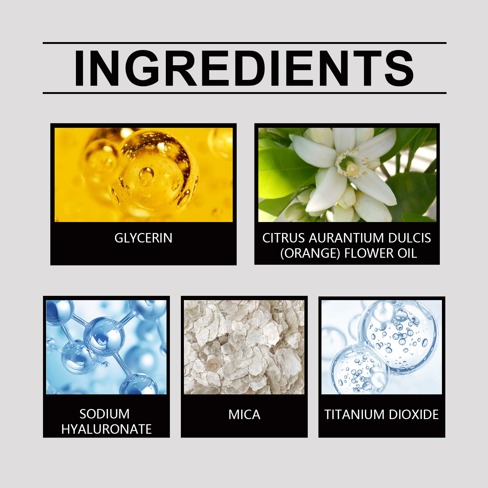 | 成分 | 甜橙花油、透明质酸钠、云母 |