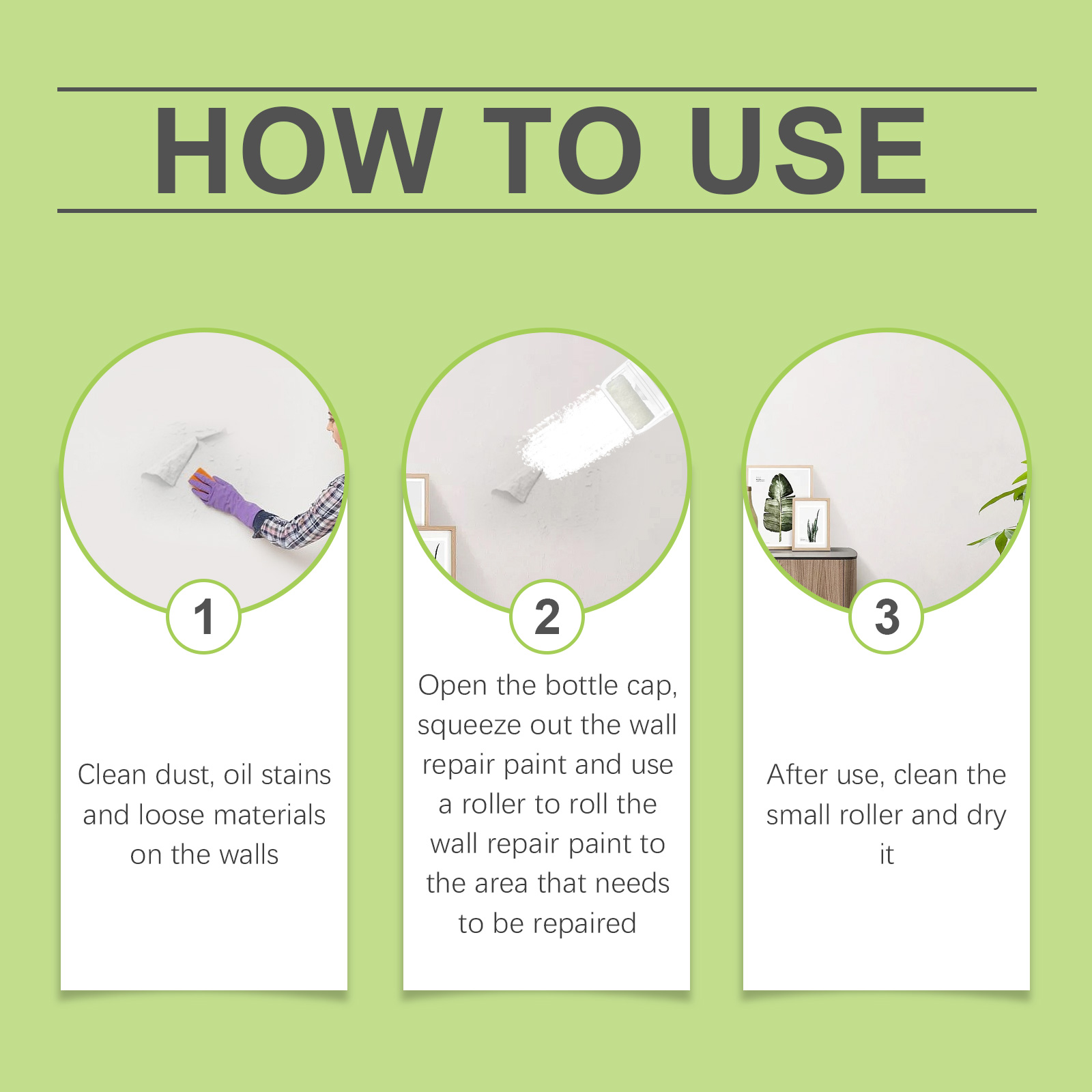 我们的补墙漆,由环氧树脂、羟乙基纤维素、碳酸钙精心调配而成。专为快速修补墙面裂缝和缺陷设计。使用方法极为便捷:1.清理墙壁上的灰尘、油污和松散物;2.打开瓶盖,挤出补墙漆,用滚轮将补墙漆滚到需要修补的地方;3.使用后,清洗小滚筒并擦干。羟乙基纤维素增加油漆的粘度,防止滴落。并具有优异的耐水性和耐候性。