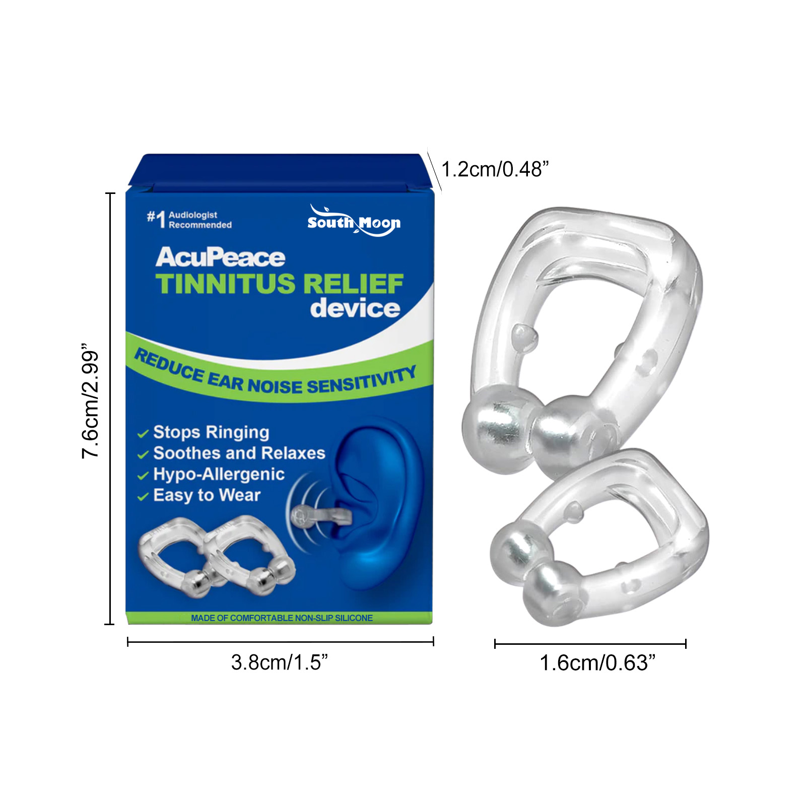 我们的耳部护理夹,由稀土磁铁、树脂精心调配而成。专为缓解耳鸣而设计。使用方法极为便捷:步骤1,清洁并干燥你的耳朵。步骤2,将夹子固定在耳屏上,并调整到合适的压力。步骤3,日常使用,可以取得更好的效果。并且无刺激性表型,可以安全使用。
