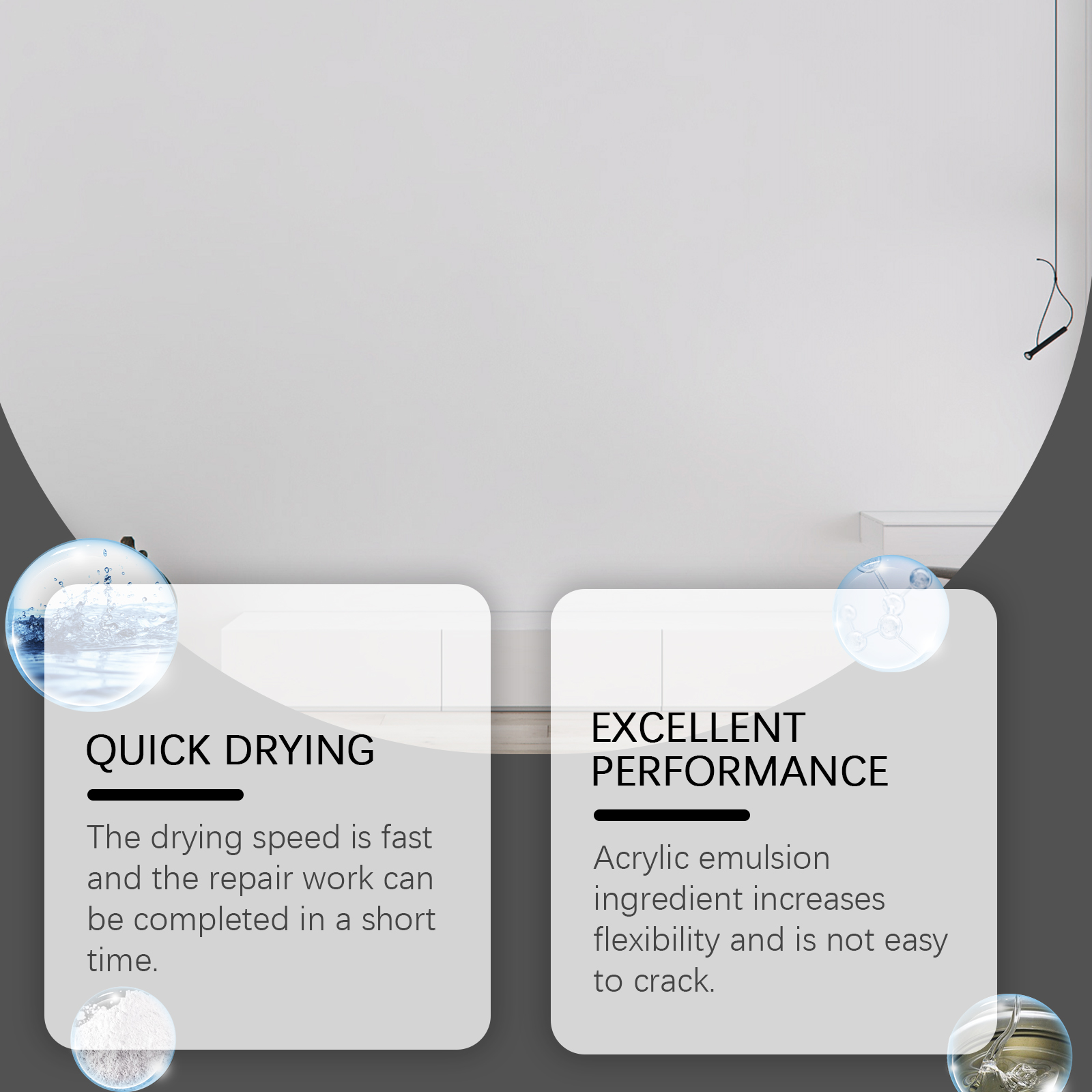 我们的墙面修补膏,由环氧树脂、羟乙基纤维素、碳酸钙精心调配而成。专为有效修复墙体裂缝设计。使用方法极为便捷:清洁需要修复的区域。安装尖端盖子,并将修复膏涂抹在需要修复的区域。用刮刀平整表面。完全固化后用砂纸打磨光滑。并且干燥速度快,修复工作可在短时间内完成。