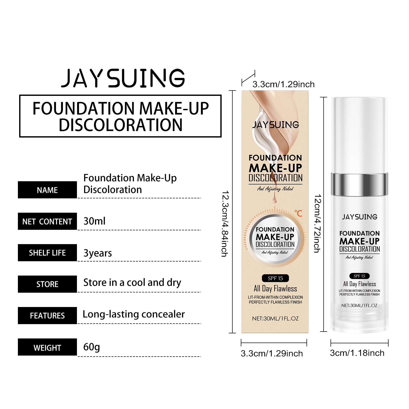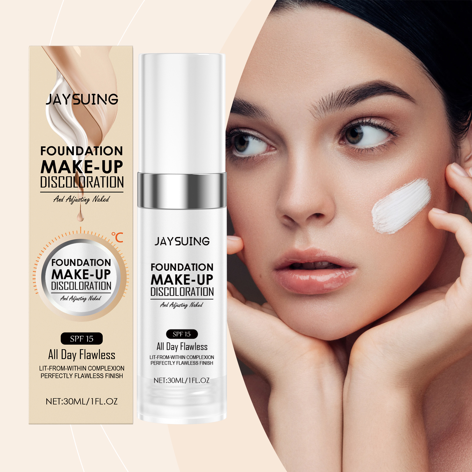 Jaysuing Warm Change Liquid Foundation, Moisturizing Natural Concealer Long Lasting Moisture Without Dehydrating Makeup Bright Warm Change Liquid Foundation