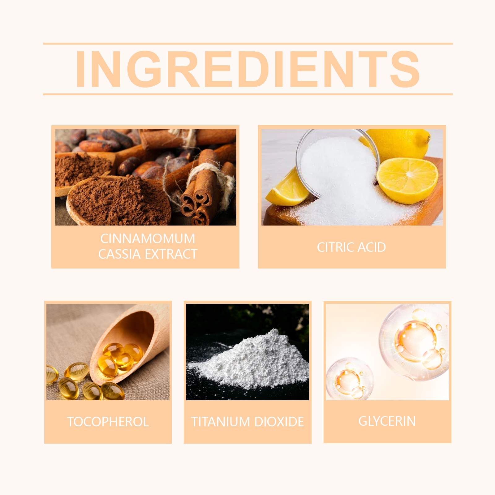 我们的温变粉底液,由甘油、肉桂提取物、柠檬酸精心调配而成。专为均匀提亮肤色,遮盖瑕疵设计。使用方法极为便捷:1.在化妆前清洁面部并进行护肤。2.将适量的液体粉底液挤到手背上。3.轻轻地将粉底液从脸部中心向外推开,使妆容均匀。4.轻轻拍打,帮助粉底更好地融入皮肤。并且具有防水和抗汗功能,使妆容一整天保持完好。