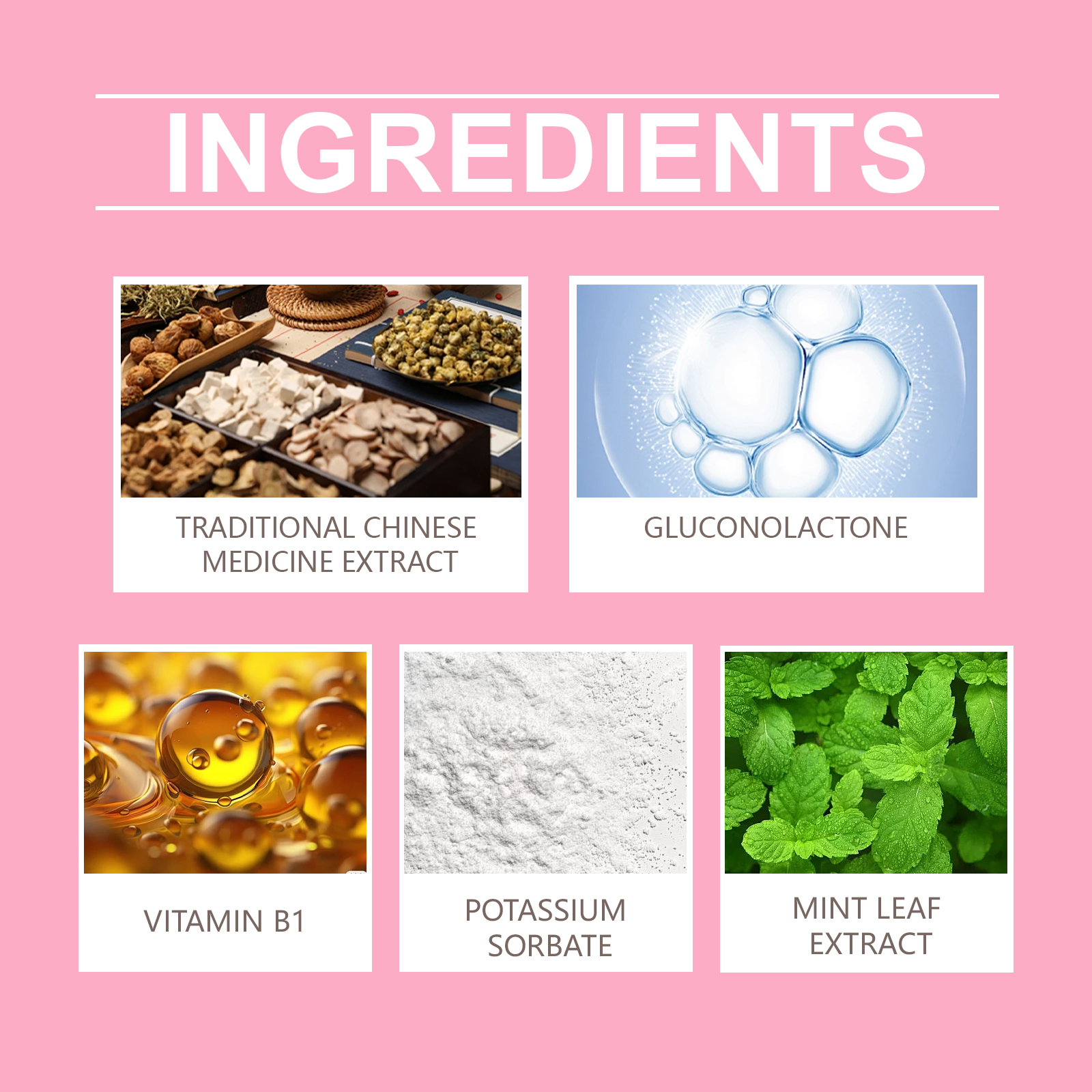 | 成分 | 中药提取物、葡萄糖酸内脂、维生素b1 |