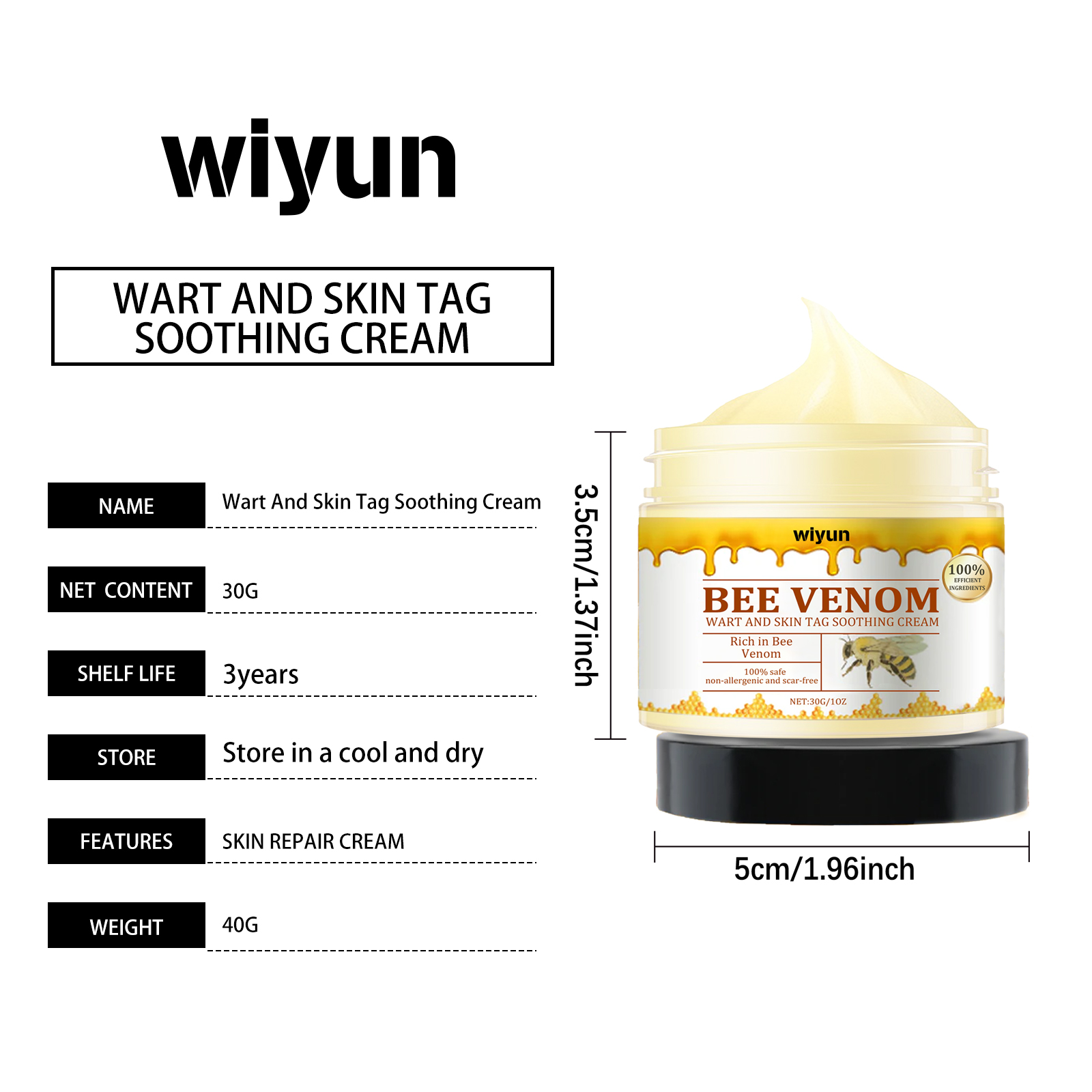 Wiyun Beesvenom Creme, A Gentle, Herbal Cleansing Cream That Nourishes, Rejuvenates And Restores Skin