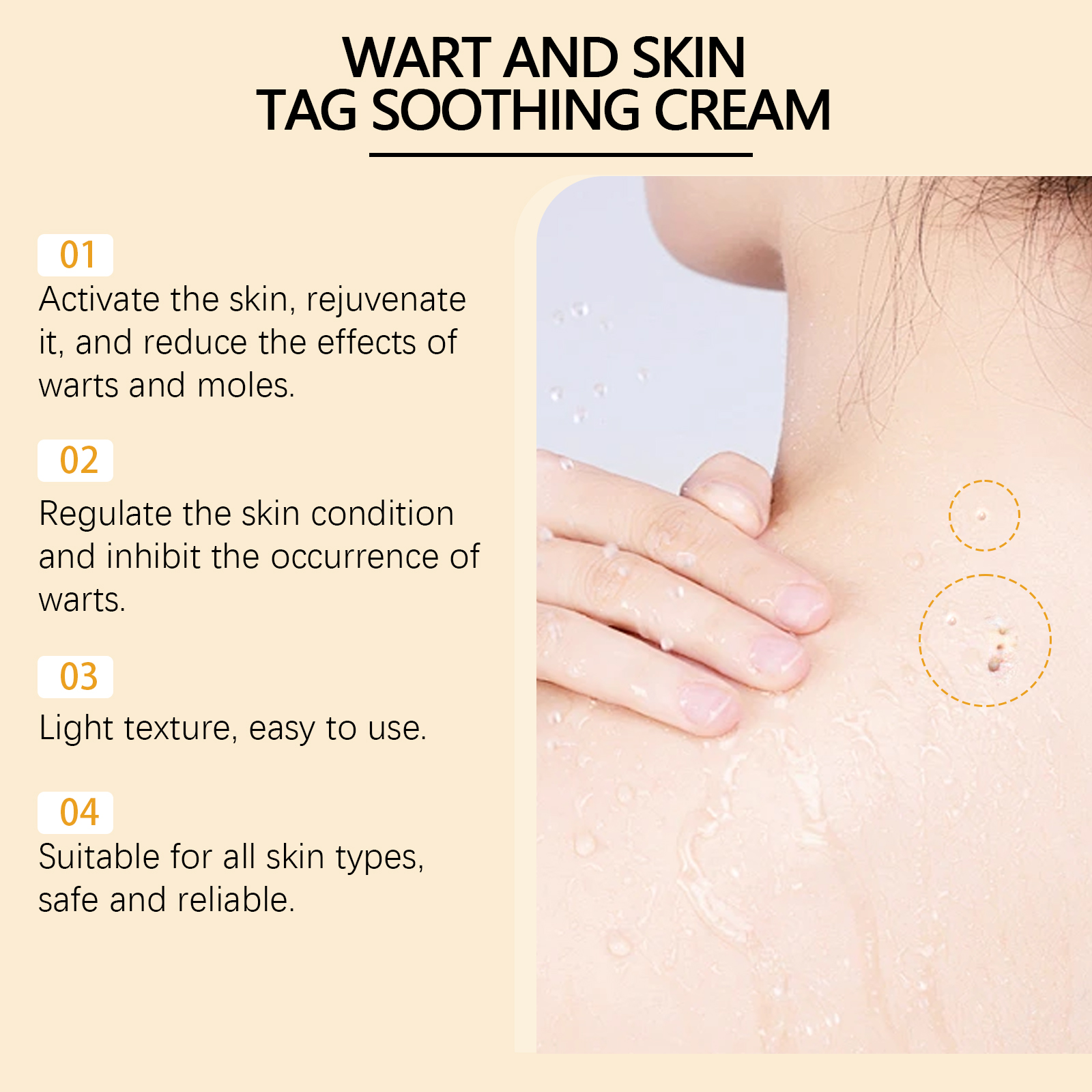 我们的蜂毒克尤护理霜含有茶树叶油、维生素D3。它可以抑制瑕疵的再生,并通过长期使用使肌肤更加均匀。它的使用方法很简单:清洁皮肤,取适量乳膏轻轻涂抹于疣和痣上,然后均匀涂抹,等待吸收。并且可以温和调节肌肤问题,改善整体肌肤质地。强化肌肤屏障,增强对外部环境的抵抗力。