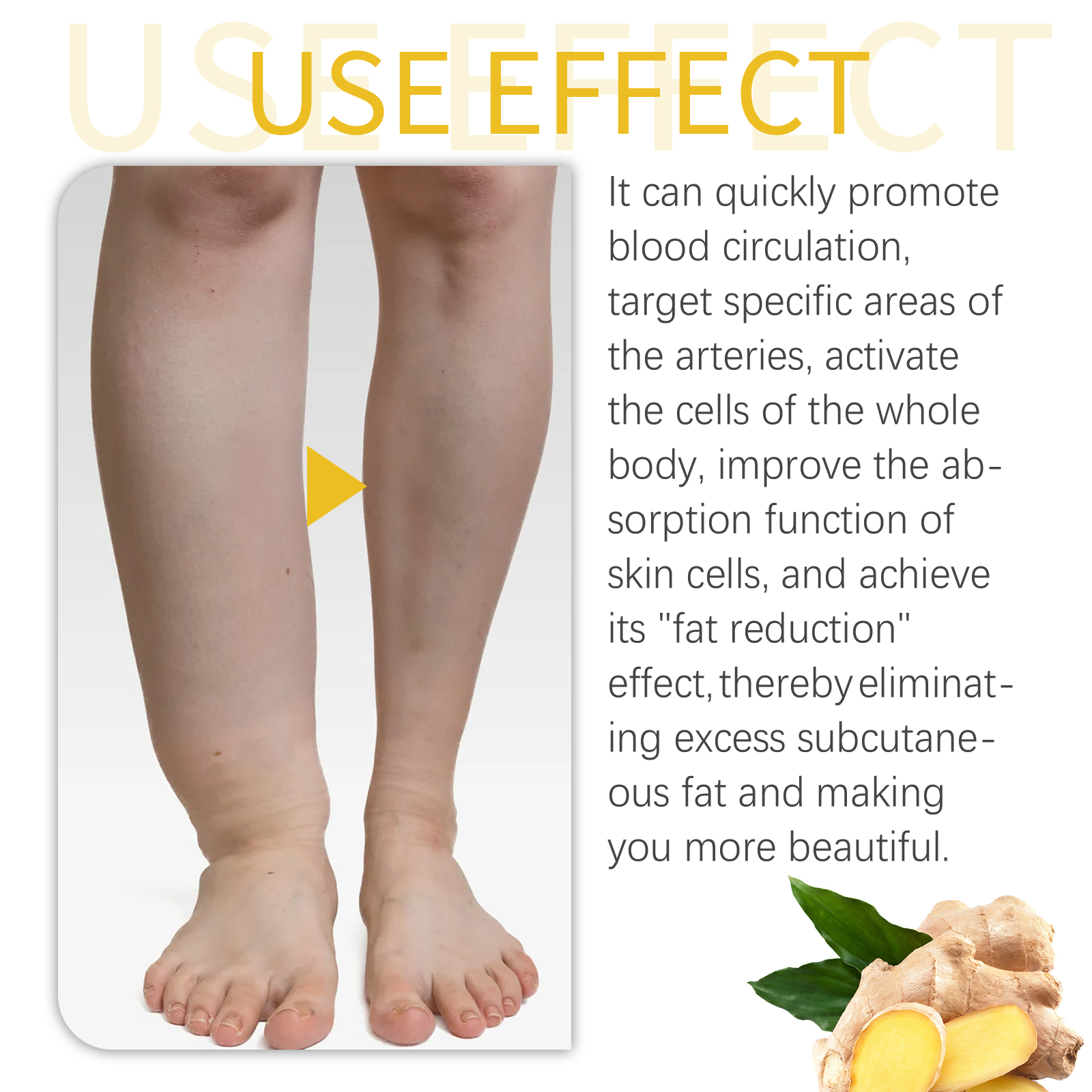 我们的生姜护理贴含有艾草、生姜、竹子。它可以清洁和净化免疫系统,同时减少肿胀和多余的脂肪,促进正常的淋巴功能,减少体内毒素和脂肪的积聚。它的使用方法很简单:清洁和擦干脚底,打开包装取出贴片,撕掉背膜后将贴片贴在脚掌中部约6一8小时,睡醒后,取下贴片,用清水洗脚即可。促进动脉特定部位的血液循环,激活全身细胞,提高皮肤细胞的吸收功能,达到“减脂”的效果,从而消除体内脂肪堆积。