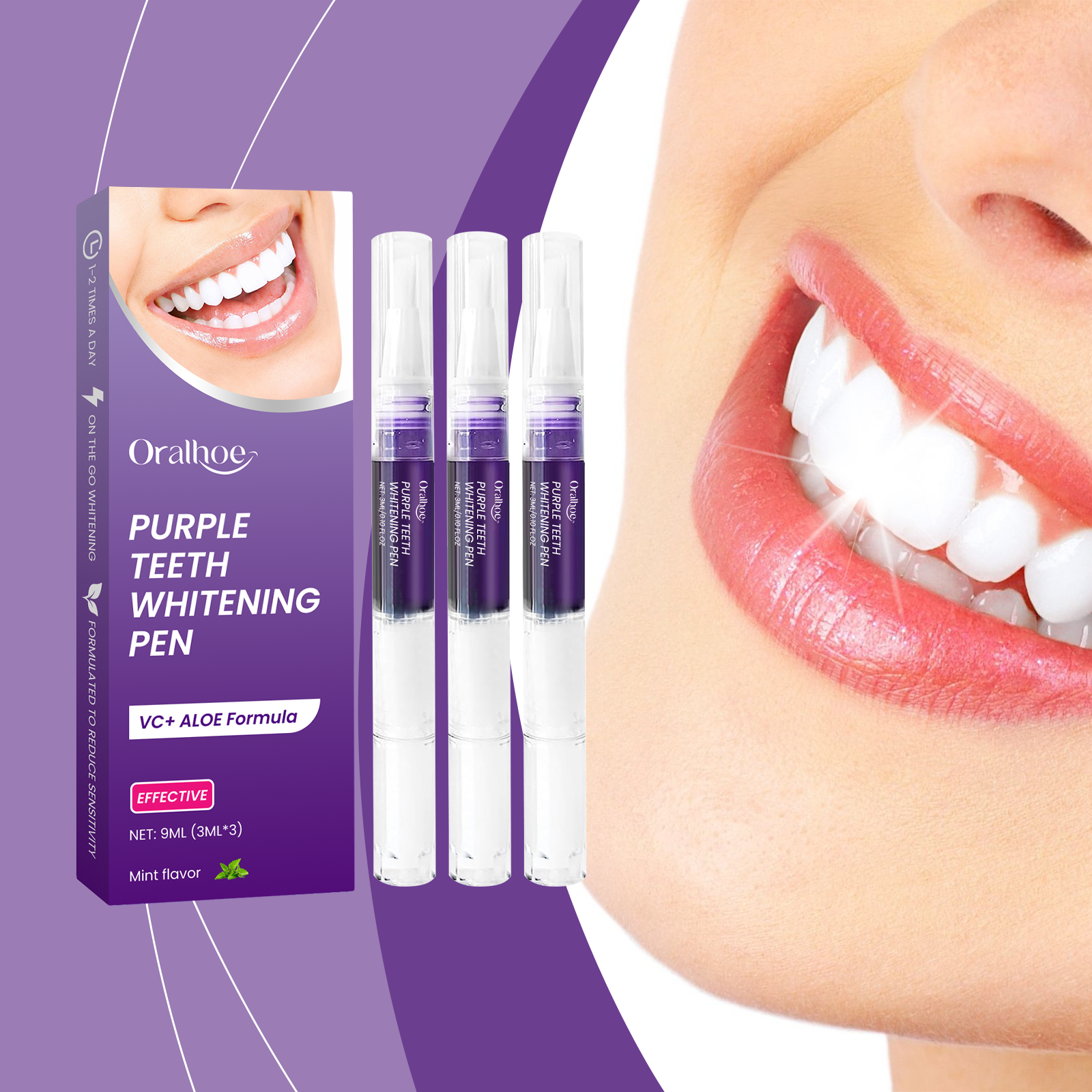 Oralhoe Purple Teeth Care Pen Clean Mouth Smoke And Tea Stains Fresh And Comfortable Teeth Cleaning Pen