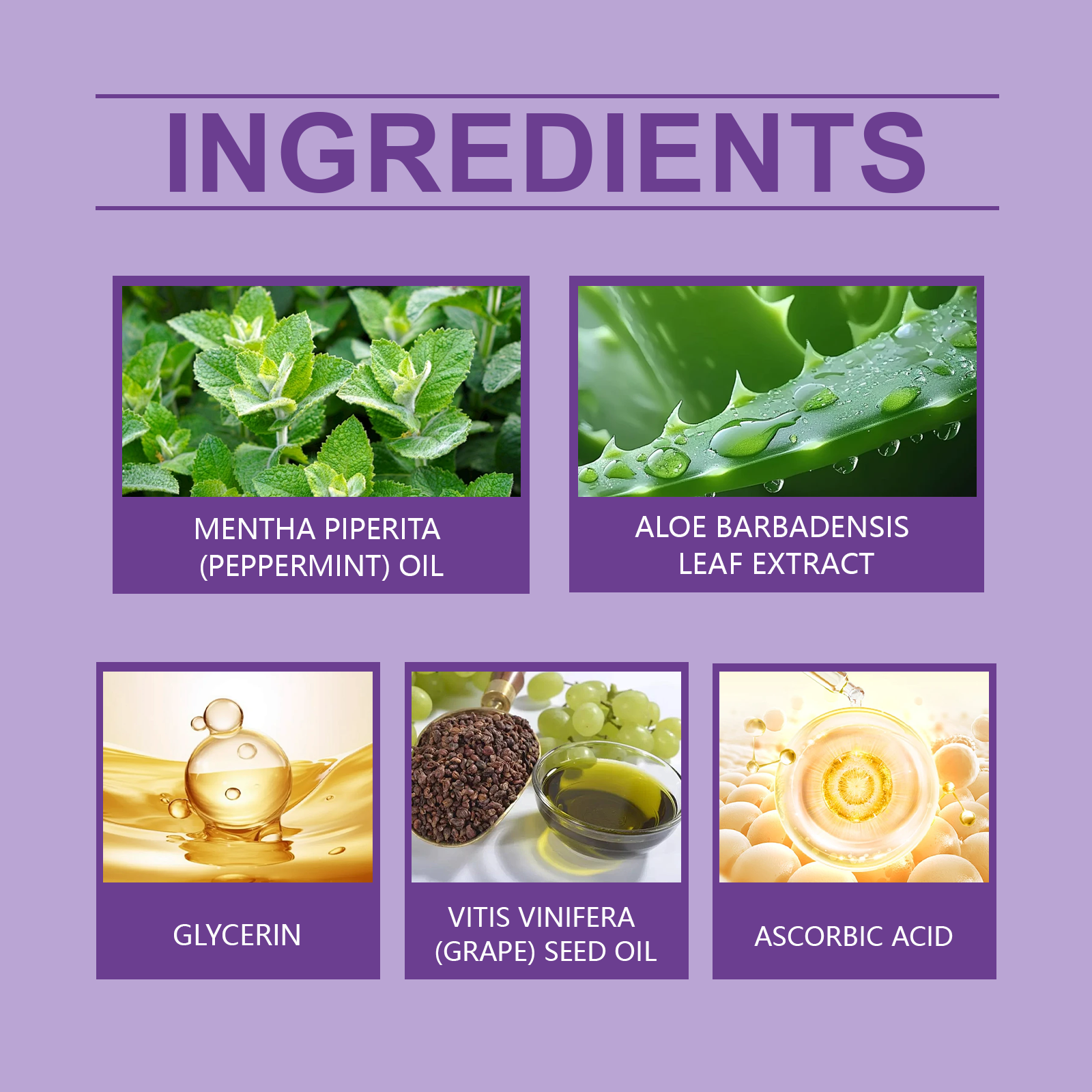 | 成分 | 维生素C(抗坏血酸)、芦荟叶提取物、薄荷油 |