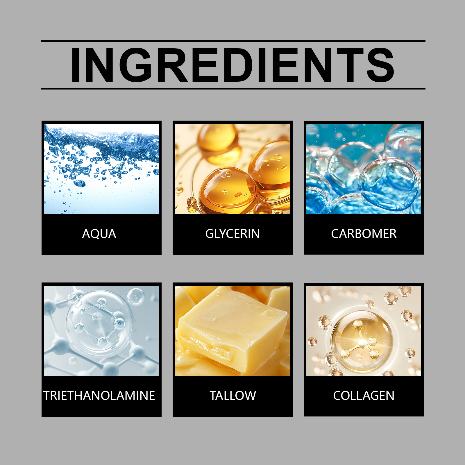 我们的牛脂保湿精华液,由甘油、卡波姆精心调配而成。专为有效改善细纹和皱纹设计。使用方法极为便捷:1.清洁面部皮肤,保持干燥。2.取适量精华液均匀涂抹于面部。3.轻轻按摩以促进吸收。并且可以深层滋润肌肤,锁住水分。提供持久的保湿,并保持皮肤柔软和弹性。