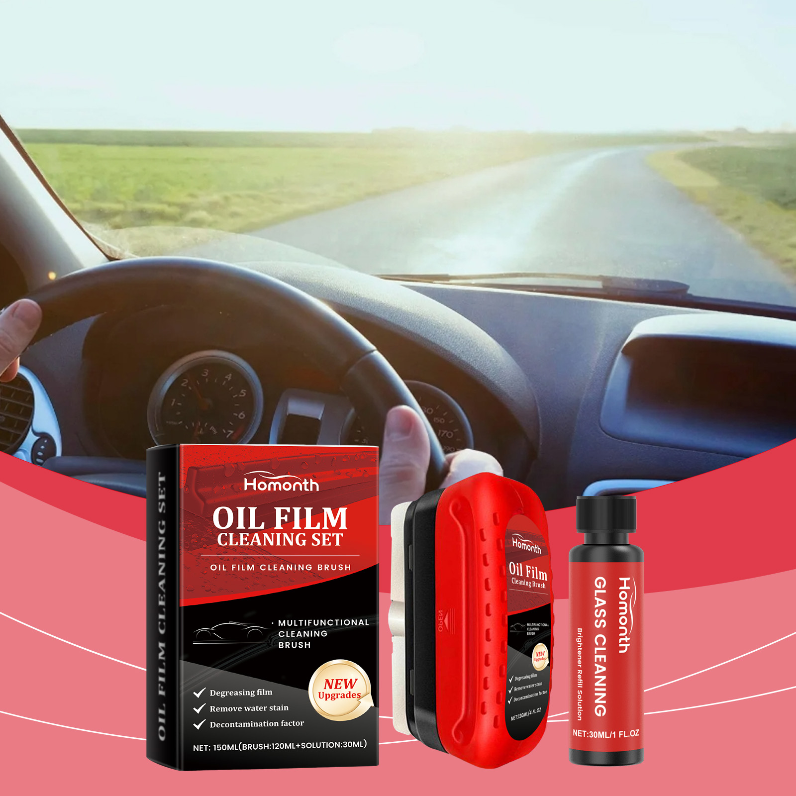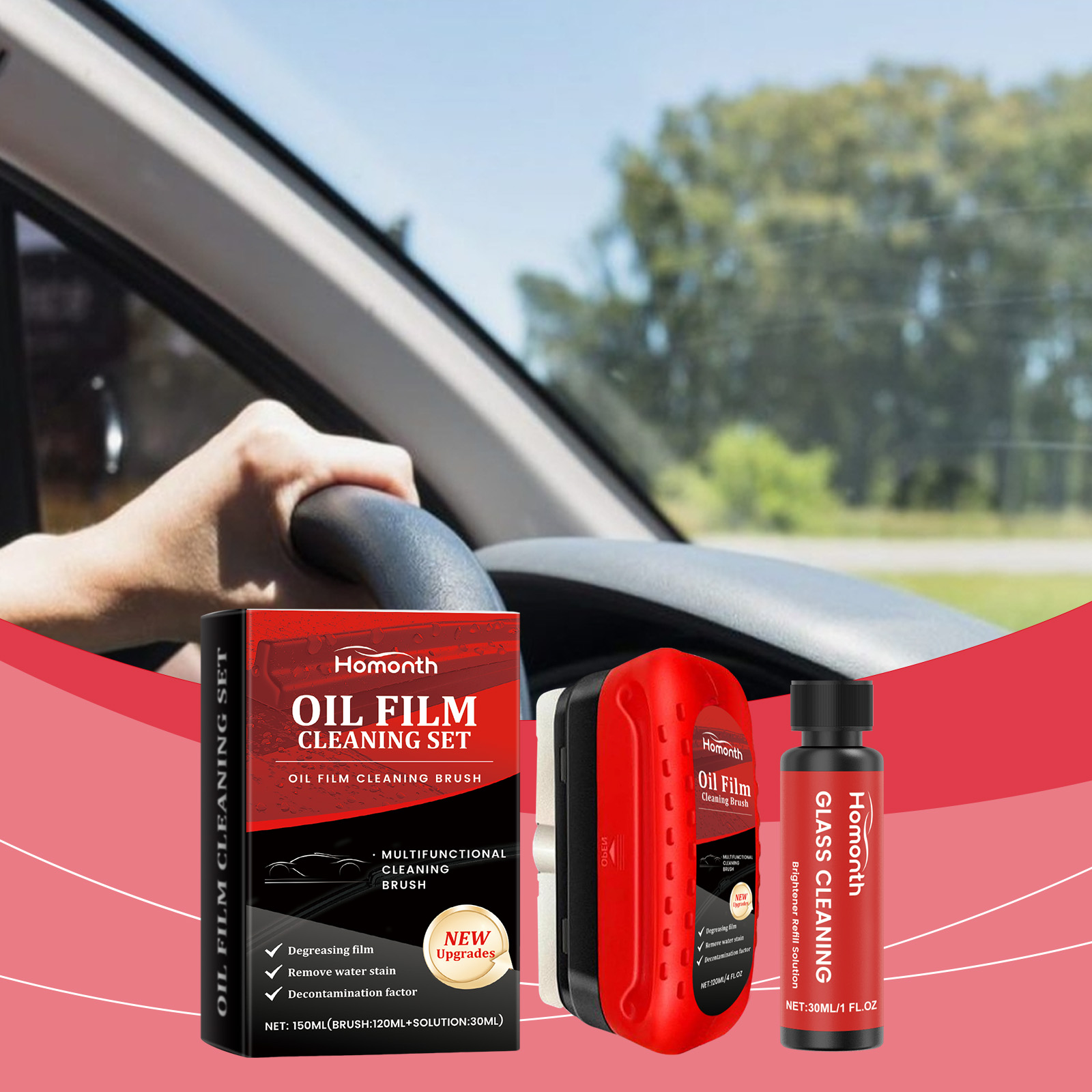 Homonth Automotive Glass Oil Film Remover Set Decontamination Waterproof Window Cleaning Car Glass Cleaning Brush