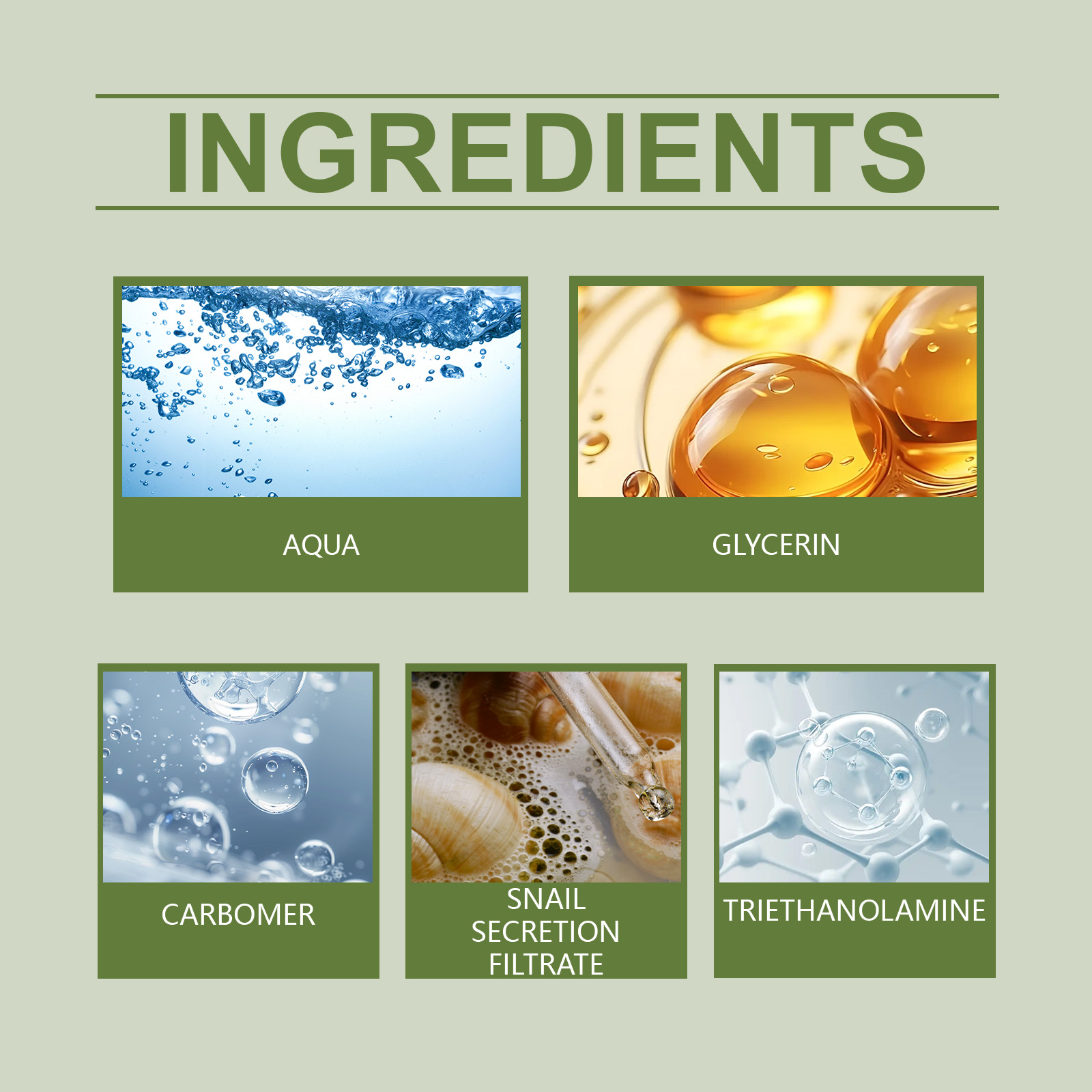 | 成分 | 三乙醇胺、蜗牛分泌物滤液 |