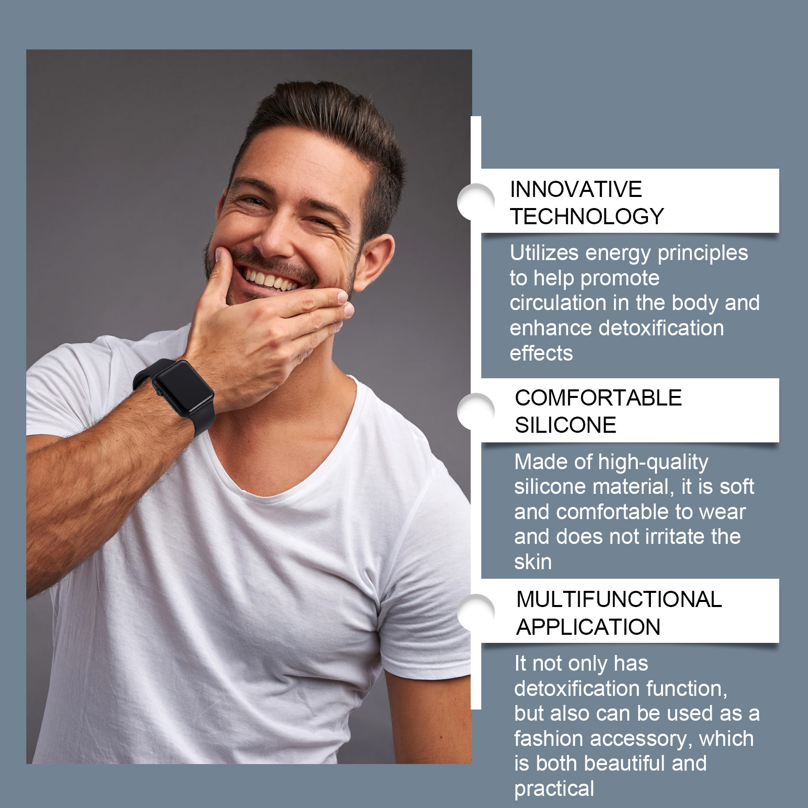 我们的身体护理手表含有硅胶。它可以利用能量原理帮助促进体内循环,增强排毒效果。它的使用方法很简单:直接戴在手腕上就行了。提供持久的电池寿命,确保全天排毒护理。创新的健康科技帮助现代人保持健康的生活方式。