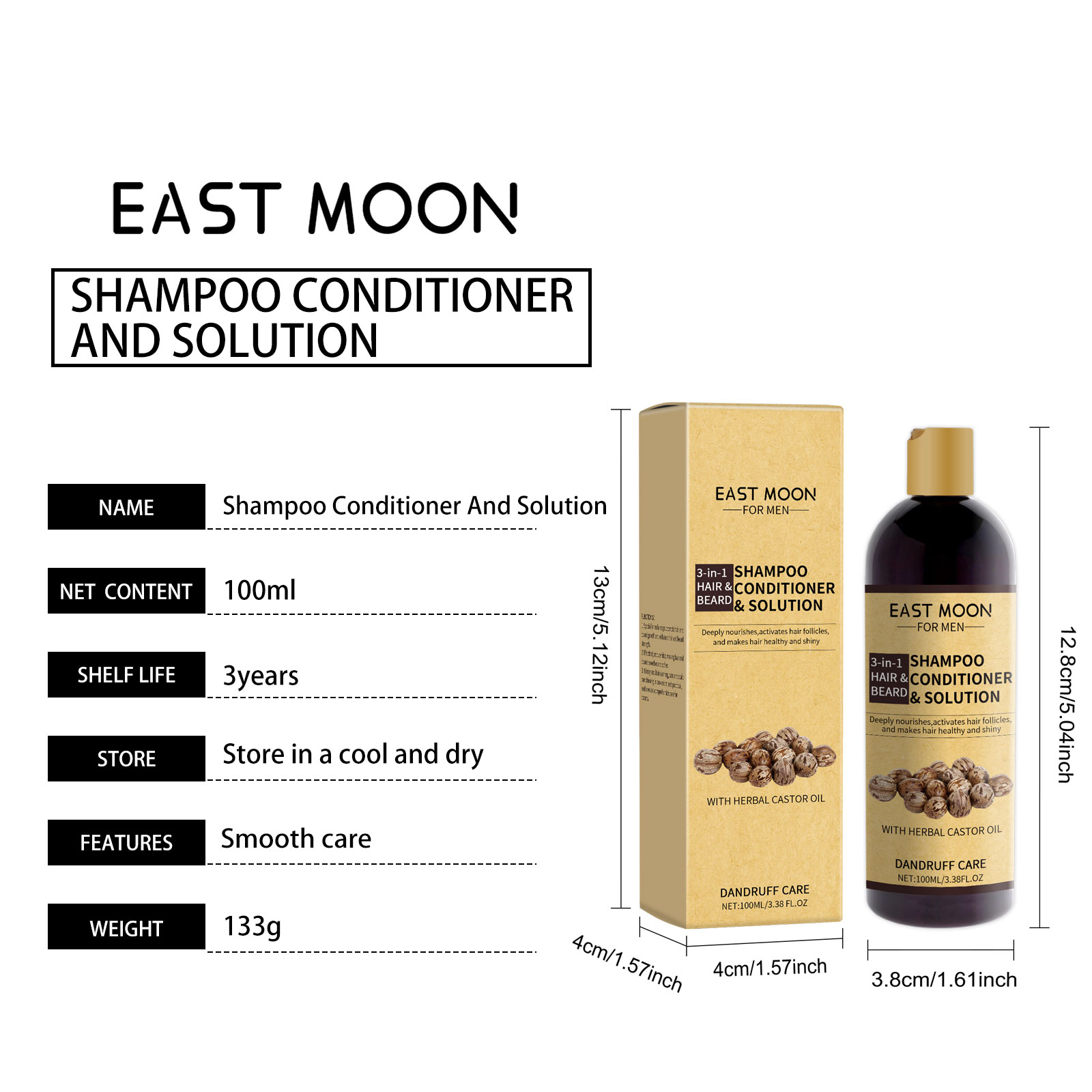 East Moon 3 In 1 Beard And Hair Care Agent, Men's Beard And Hair Gentle Cleaning, Nourishing And Moisturizing Softener