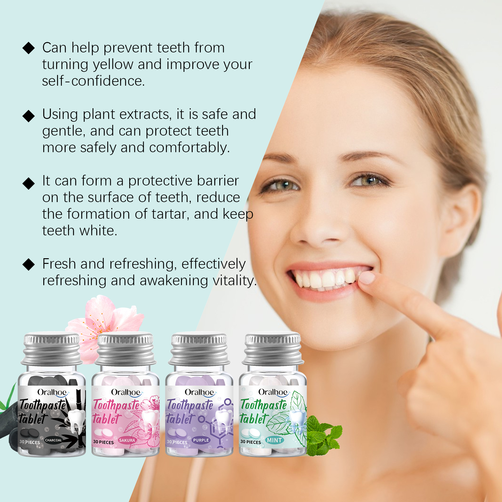 Oralhoe Solid Toothpaste Tablets For Deep Tooth Cleaning Oral Care Yellow Dirt Cleaning Portable Toothpaste Tablets