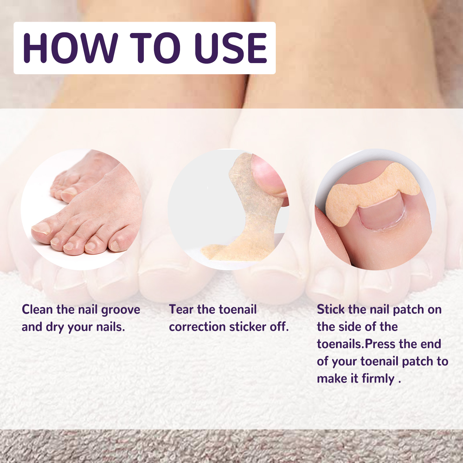 我们的弹性脚趾甲矫正贴含有无纺布材质。它有助于嵌趾甲矫正。它的使用方法很简单:清洁指甲槽,擦干指田。把脚趾甲矫正贴撕掉,把指甲贴在脚趾甲的侧面。按下你的脚趾甲补丁的末端,使其牢固。使用后保证我们的脚趾甲健康。