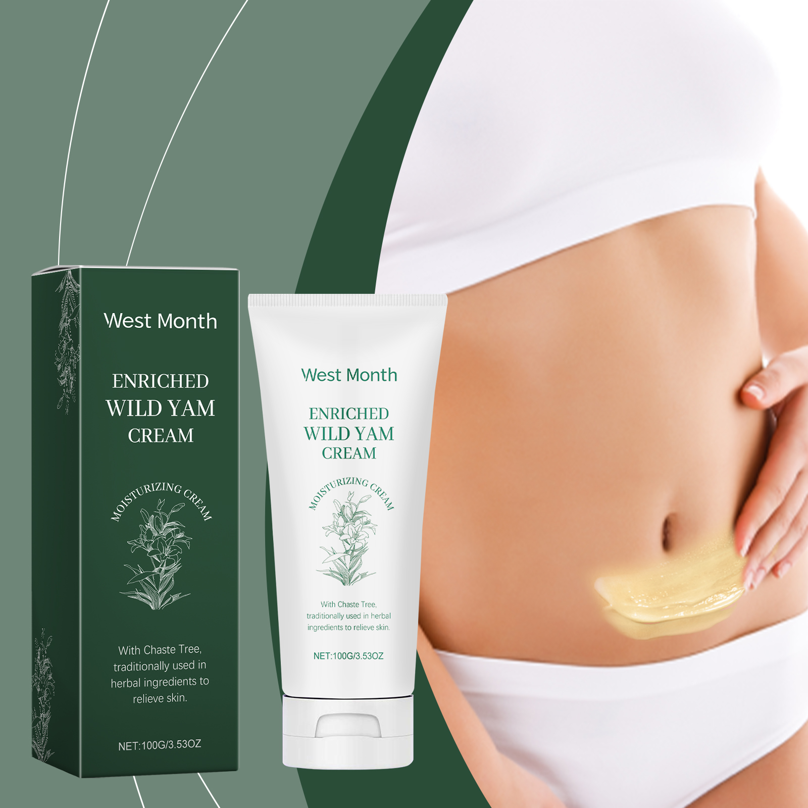 West Month Yam Cream, Women's Daily Body Care Cream To Relieve Discomfort, Moisturize And Rejuvenate Skin Massage Care Cream
