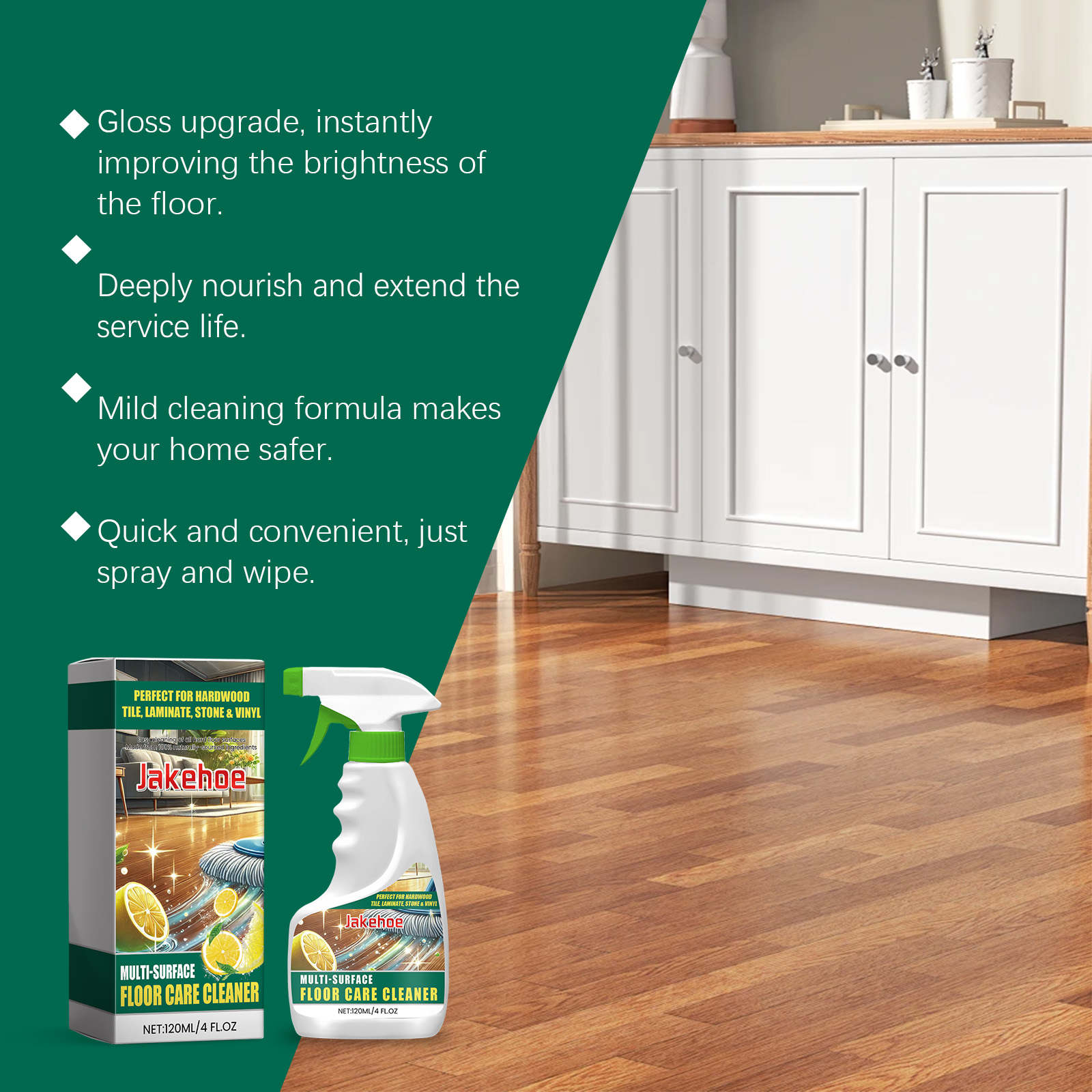 Jakehoe Floor Cleaner Maintenance Clean Floor Spray Decontamination Non-Slip Bright Floor Cleaner