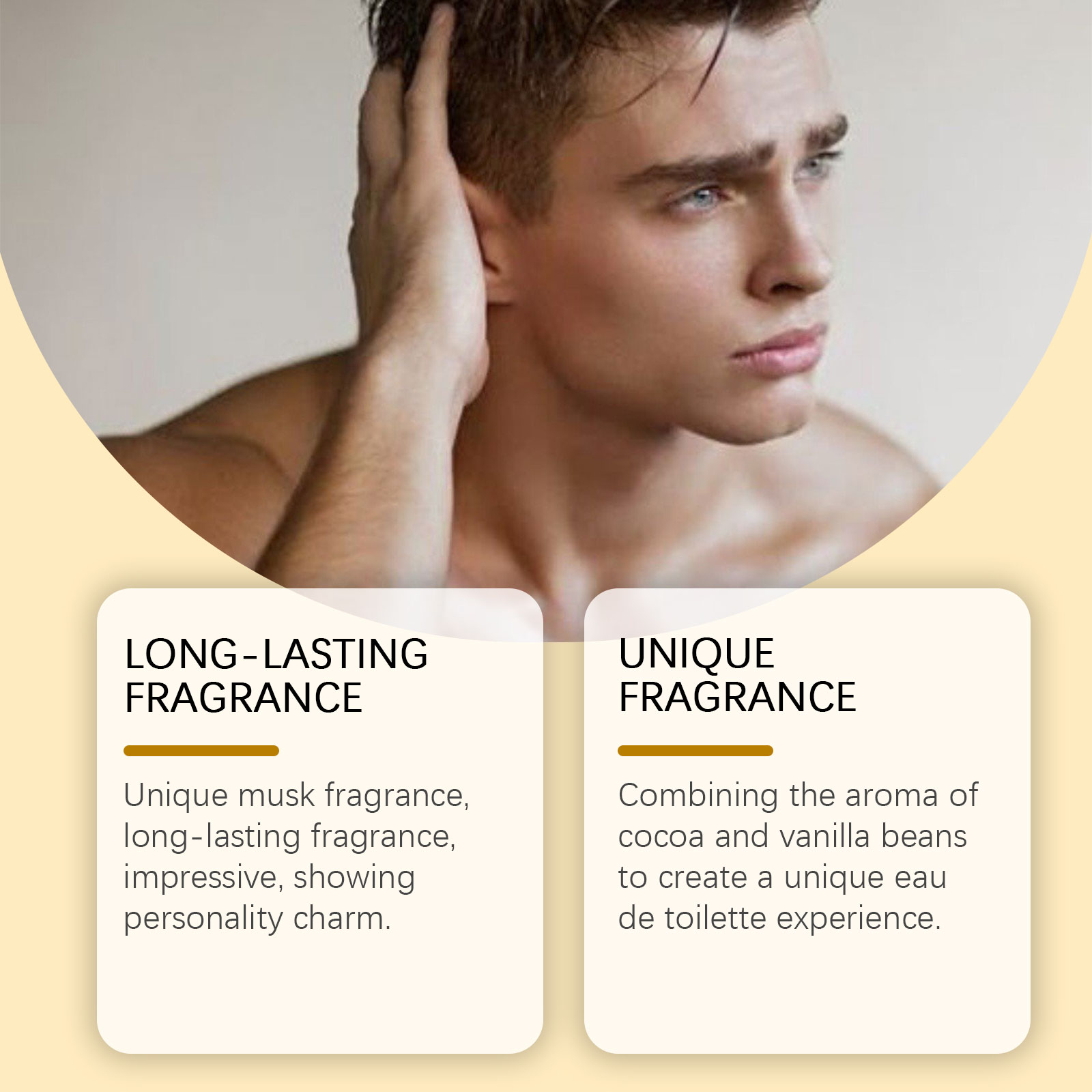 我们的魅力古龙淡香水含有麝香酮、可可提取物、香草豆提取物。它可以提供持久的香味基础,帮助香味持续更长时间。为香水增添了浓郁的甜味和层次感。为柔和愉快的体验增添温暖的香气。它的使用方法很简单:取适量本品,均匀喷在手腕、耳后、脖子和其他你想让香味散发的地方。麝香独特,香味持久,令人印象深刻,展现个性魅力。结合可可和香草豆的香气,创造出独特的盥洗体验。