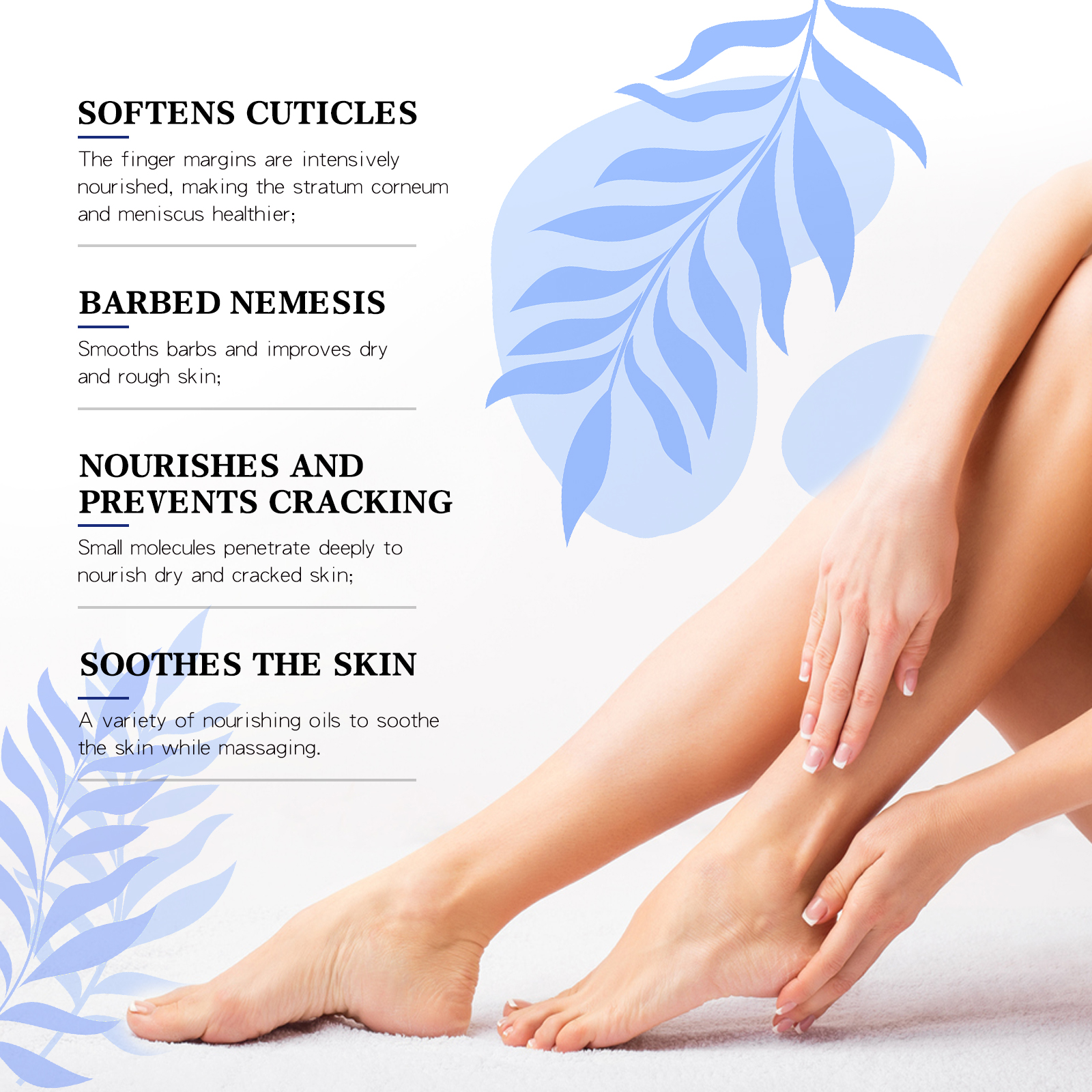 我们的手足修护霜含有薄荷提取物、苦参提取物、蛇床子提取物。它可以软化角质层,强化滋养指缘,使角质层和半月板更健康,平滑倒钩,改善干燥粗糙的皮肤,小分子深层渗透,滋养干燥干裂的肌肤。它的使用方法很简单:清洁并擦干手或脚的皮肤,取适量产品均匀涂抹于患处,等待2-3分钟让它吸收即可,每天使用两次,效果更好。软化角质层,平滑倒刺,滋养并防止皮肤干裂脱皮。
