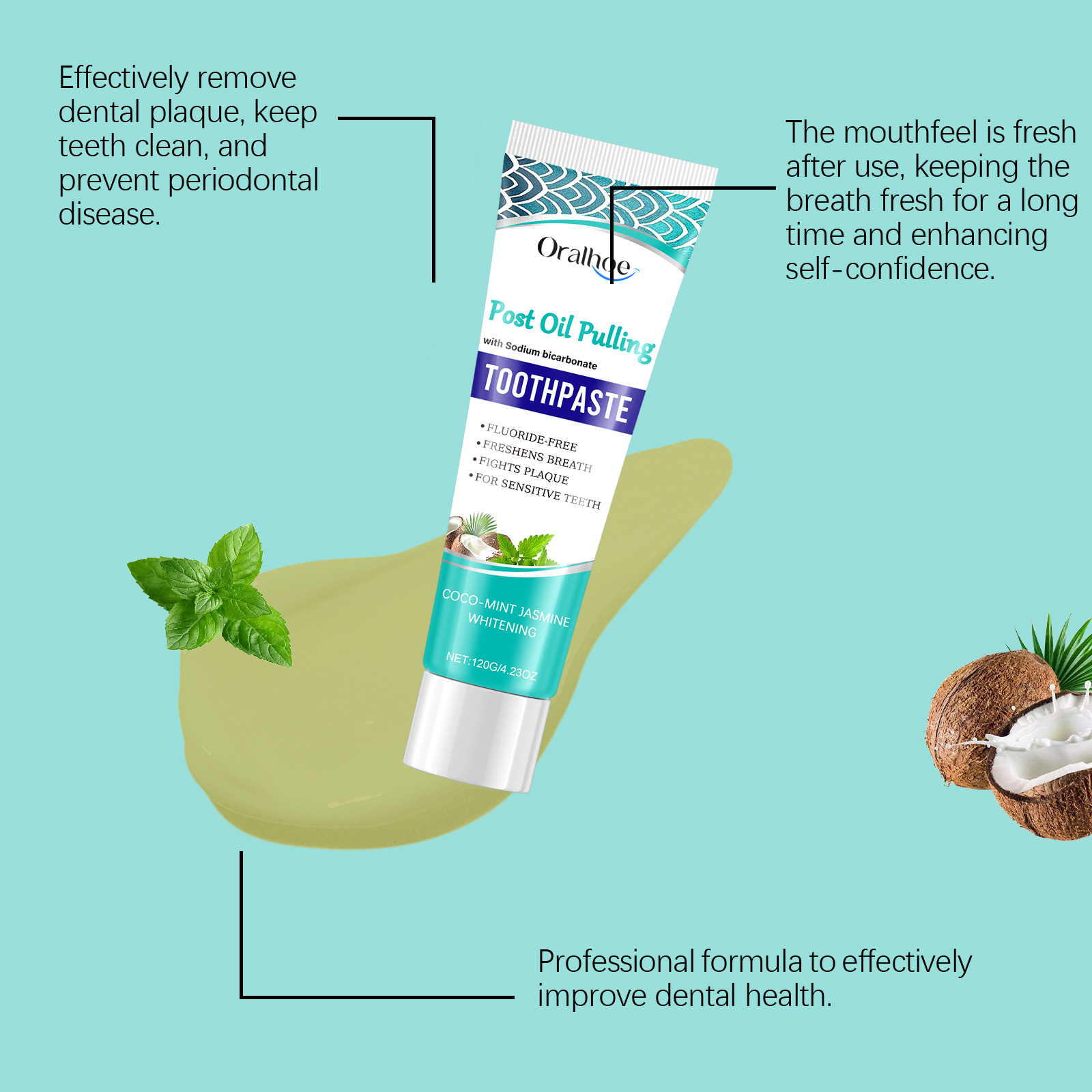 Oralhoe Dental Care Toothpaste, Dental Care Clean Yellow Teeth, Remove Stains, Dirt And Mild Fresh Teeth