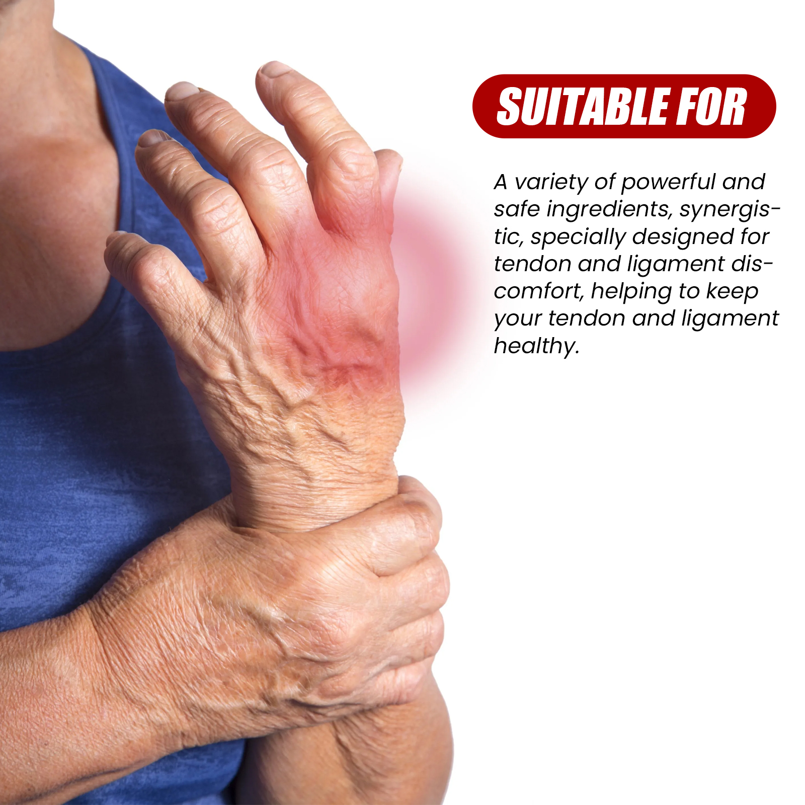 我们的关节缓解喷雾含有姜黄、山金车、薄荷提取物。它可以支持健康的肌腱鞘功能,缓解疼痛,减少关节炎症。它的使用方法很简单:1.将患处洗净擦干。2.按1-2次,然后直接将药液喷洒在患处,轻轻按摩至吸收。(建议每天使用2次,效果更好。)并且专门针对肌腱和韧带的不舒适性而设计,有助于保持肌腱和肌腱的健康。