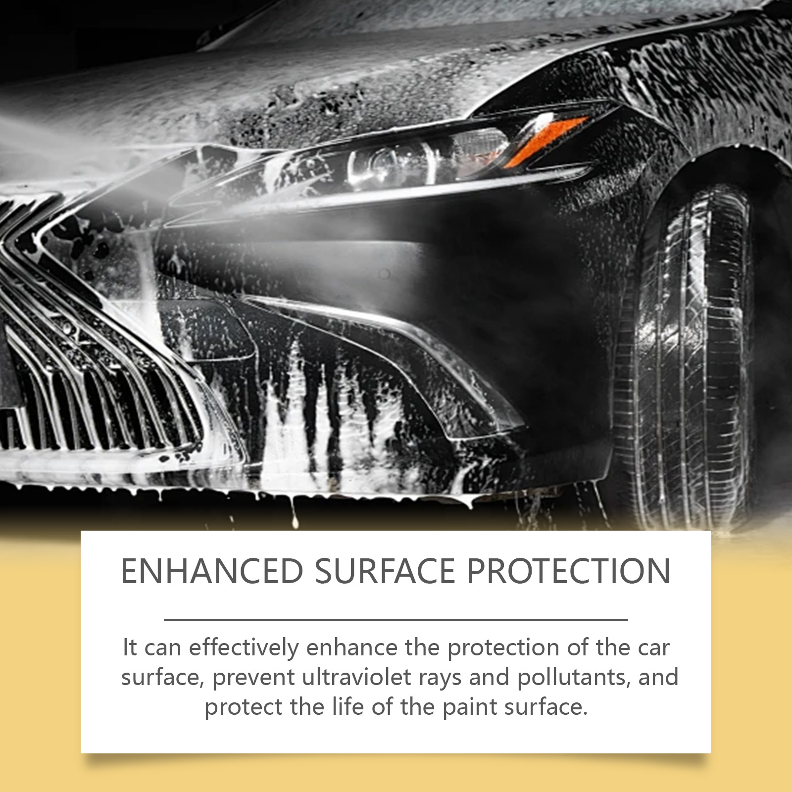我们的多用途泡沫清洁剂含有EDTA 二钠、碳酸氢钠、月桂醇聚醚-7。它可以在表面形成保护层,有效地排斥水和污垢,保持您的汽车清洁。它的使用方法很简单:1.摇匀瓶子,均匀喷在待清洁的表面。2.用海绵擦拭,直到污渍被清除。它可以长期保持汽车表面的光泽,使你的汽车看起来焕然一新。