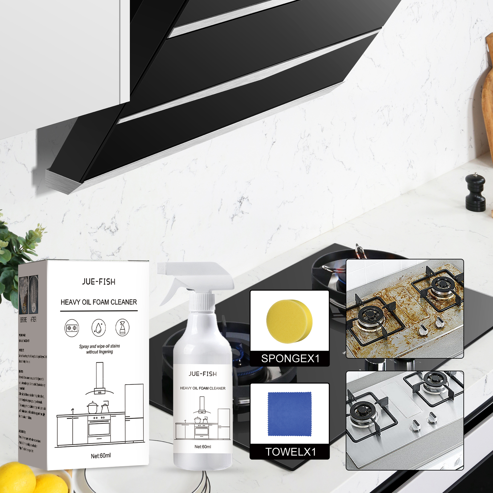 Jue-Fish Heavy Oil Foam Cleaner, Kitchen Stove Range Hood Wash Basin Oil Dirt Removal Cleaner