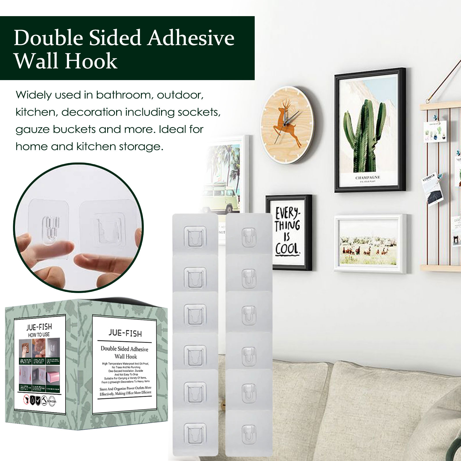 Jue-Fish Double-Sided Adhesive Wall Hook, Non-Punching Storage Rack Buckle Wall Hanging Child Buckle Adhesive Hook