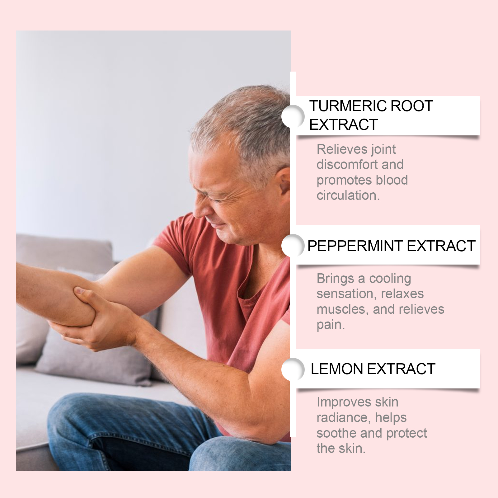 我们的关节护理喷雾含有柠檬提取物、维生素E(生育酚)。它可以增强局部血液流动,帮助身体更快恢复,不影响肌肤呼吸,轻松保持清新。它的使用方法很简单:使用前将喷雾瓶摇匀。清洁关节皮肤保持皮肤干燥。将本品均匀喷于颈椎、膝关节、肘关节等关节处等待吸收。并且可以放松紧绷的肌肉,减轻颈部和肩部的压力。