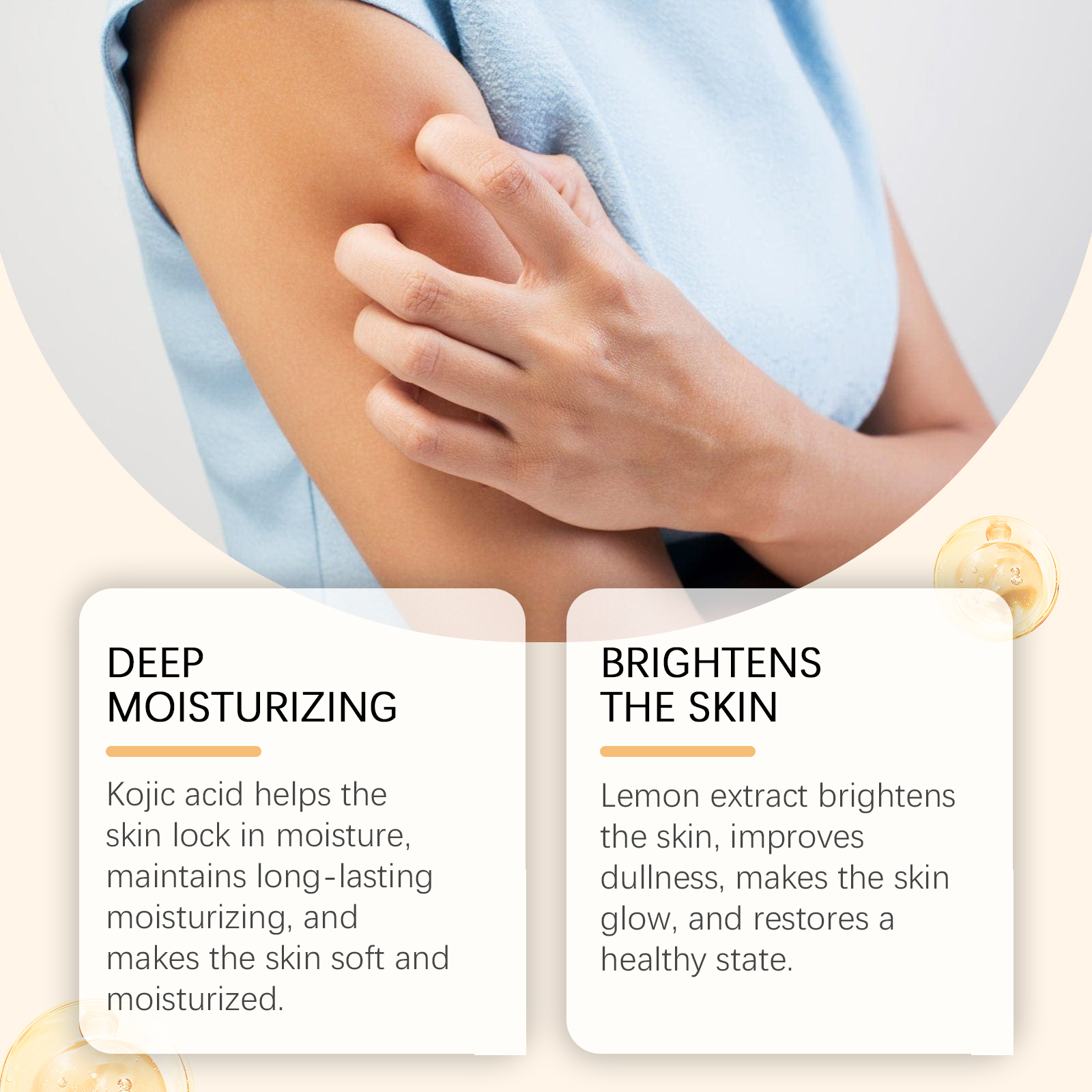 我们的柠檬姜黄曲酸皂含有姜黄根提取物、曲酸、柠檬提取物。它可以帮助肌肤锁住水分,保持持久保湿,令肌肤柔软滋润。它的使用方法很简单:1. 首先用温水湿润脸部和身体。2. 将本品置于幼嫩的手掌上,轻轻揉搓几次,直至产生丰富细腻的泡沫,然后均匀涂抹在面部和身体上,以轻柔的圆形动作轻轻按摩;3. 用清水冲洗。柠檬精华提亮肌肤,改善暗沉,使肌肤变薄,恢复健康状态。