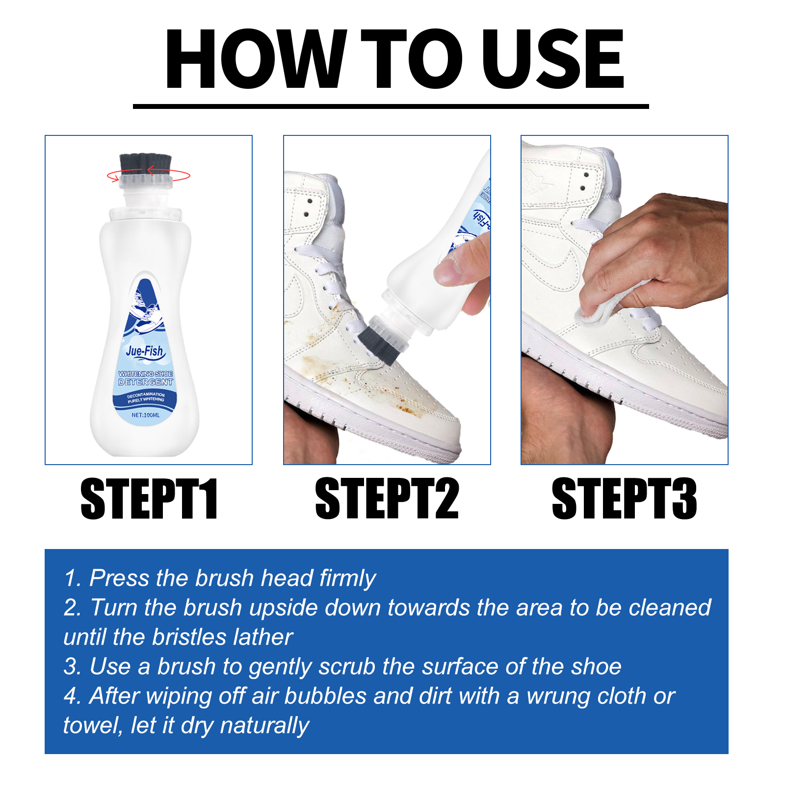 Jue-Fish Small White Shoe Cleaner, Sneakers Clean Stains Brightening White Portable Rinse-free Whitening Agent
