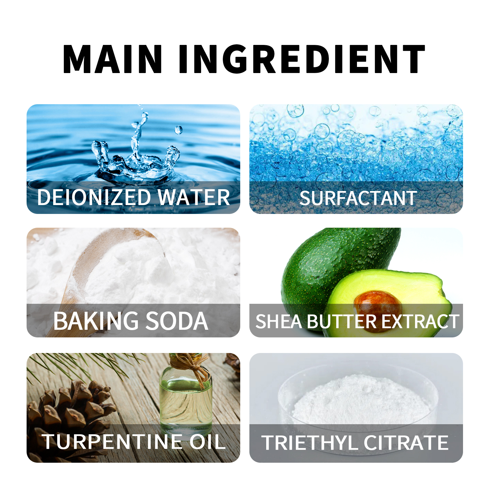 | 成分 | 去离子水、表面活性剂、小苏打 |