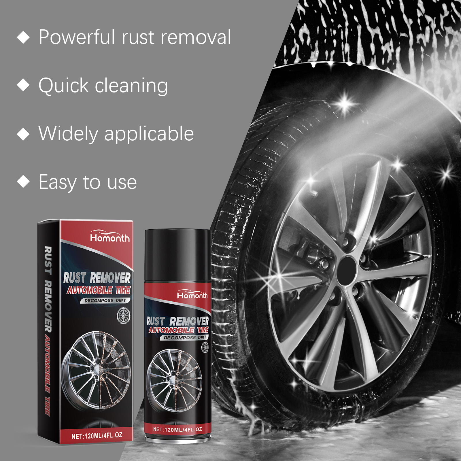 Homonth Car Tire Rust Remover Clean Rust Remover Stain Remover Refurbished Car Tire Rust Cleaner