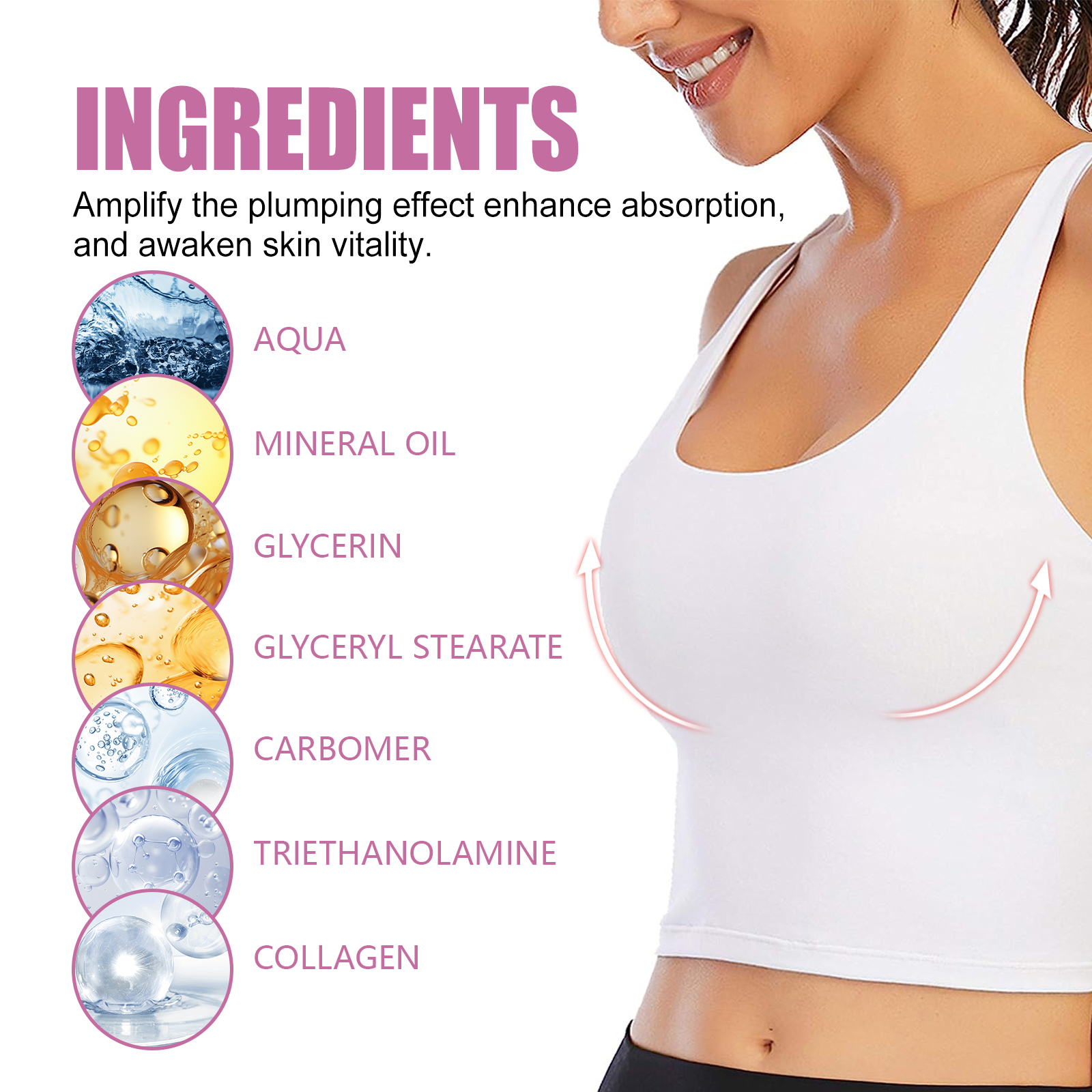 我们的胸部护理霜含有矿油、甘油。它可以调理分泌,活化乳腺,促进生长,增加紧致度,使乳房q弹饱满。它的使用方法很简单:清洁干燥胸部皮肤,取适量乳霜均匀涂抹于胸部,用手轻轻打圈按摩至吸收。强化滋养,支持乳房自然紧实饱满,加速乳房血液循环和营养供给,提高整体紧实度和弹性,使身体曲线更加优美。