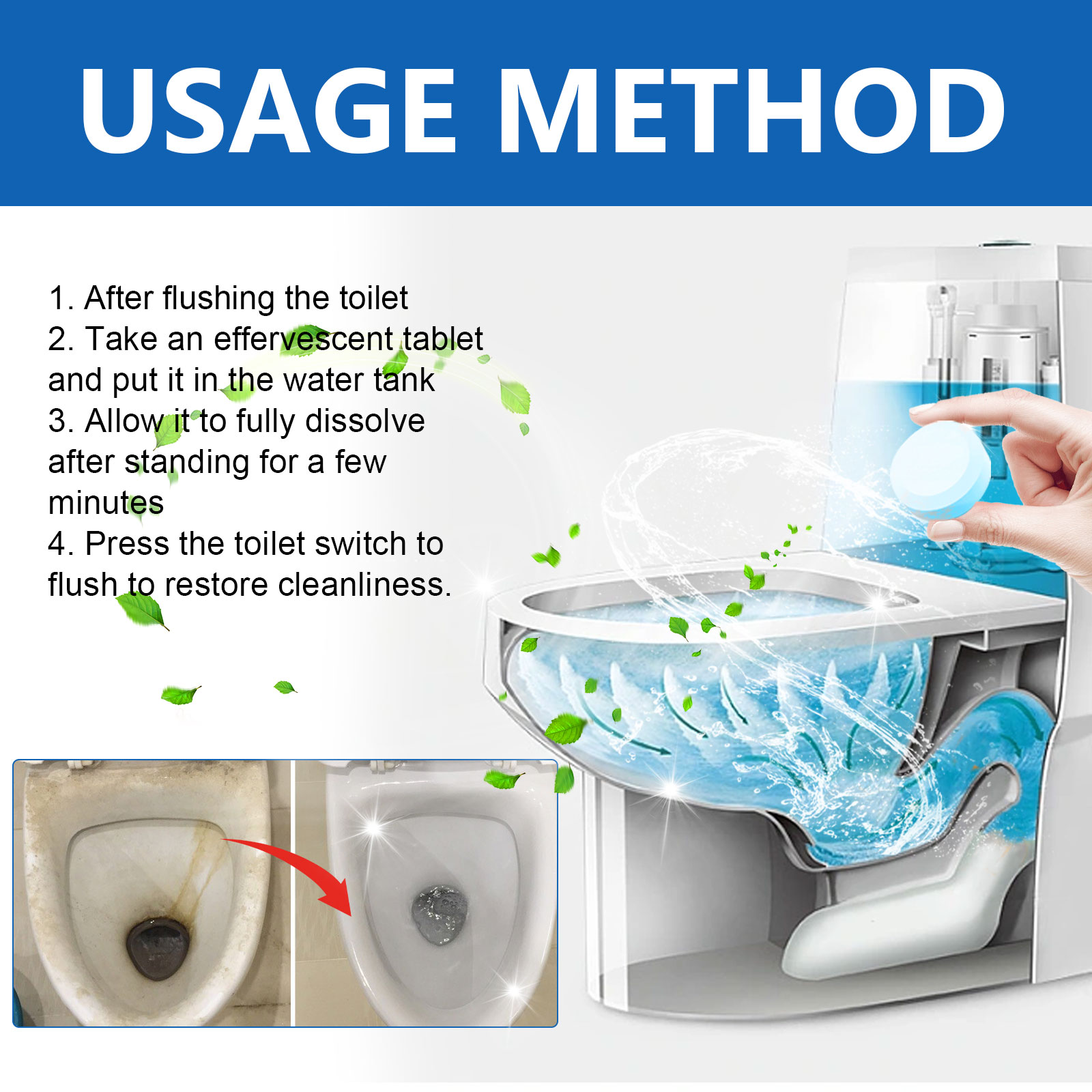 Jue-Fish Toilet Cleaning Effervescent Tablet, Toilet Cleaning Remove Odors And Dirt And Retain Fragrance Toilet Cleaning Tablets