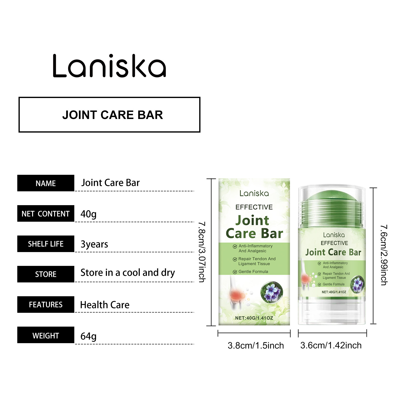 Laniska Joint Care Stick Gently Nourishes Knees And Soothes Shoulder And Back Discomfort With Daily Portable Application