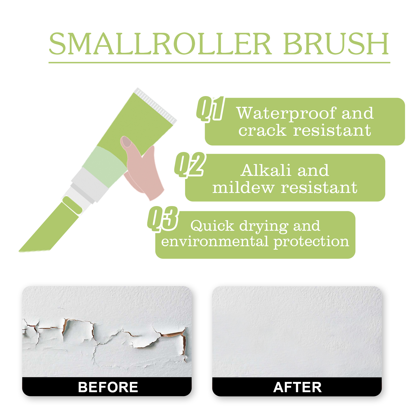 Jue-Fish Wall Repair Paint White Small Roller Brush, Wall Paint Prevent Moisture And Fall Off Cover Stains And Cracks Repair Small Roller Brush