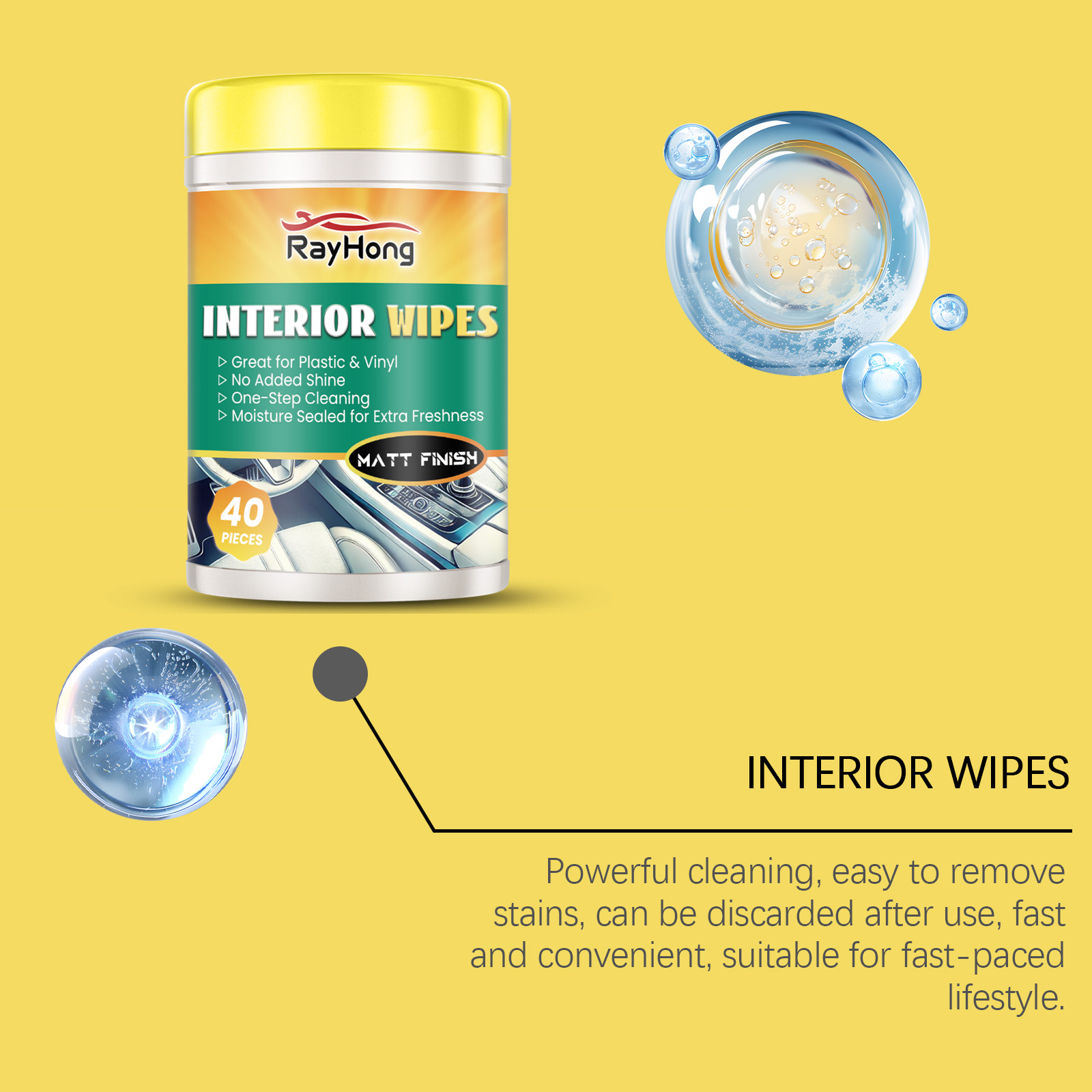 Rayhong Car Interior Cleaning Wipes, Stain Removal Clean Oil Removal Interior Bright Portable Wipes